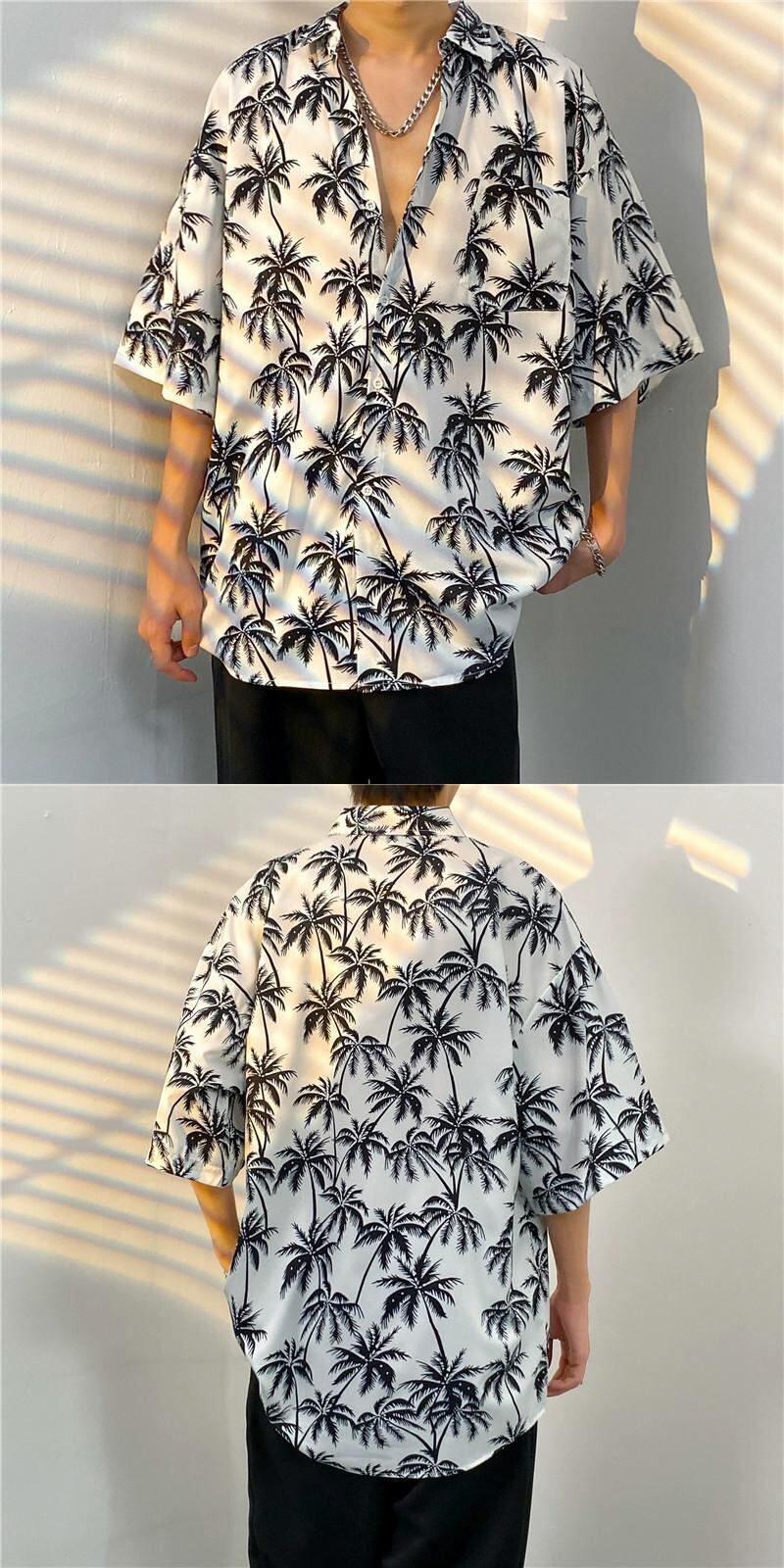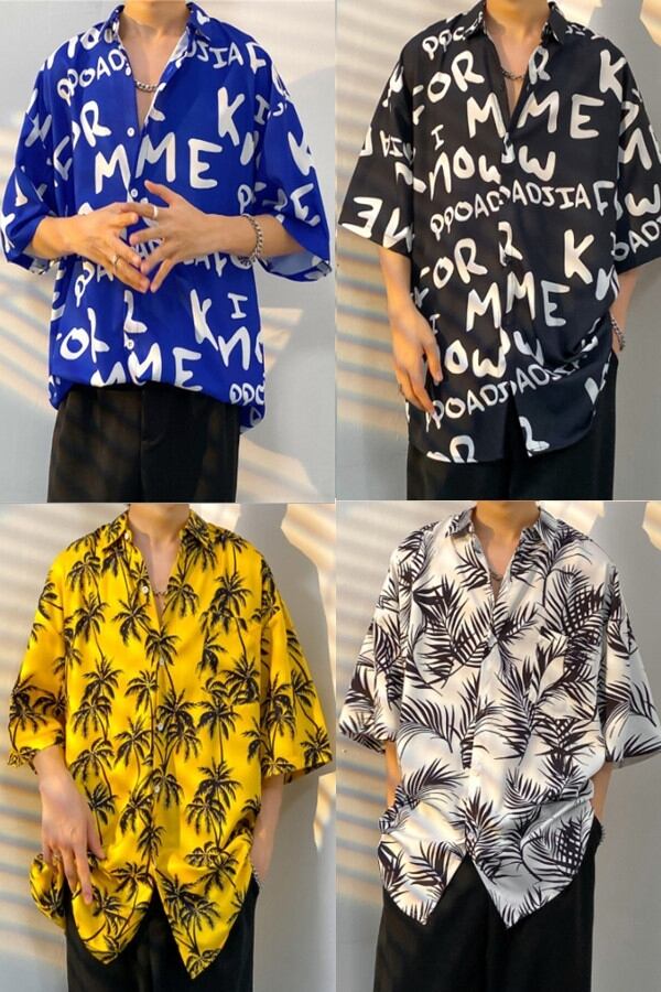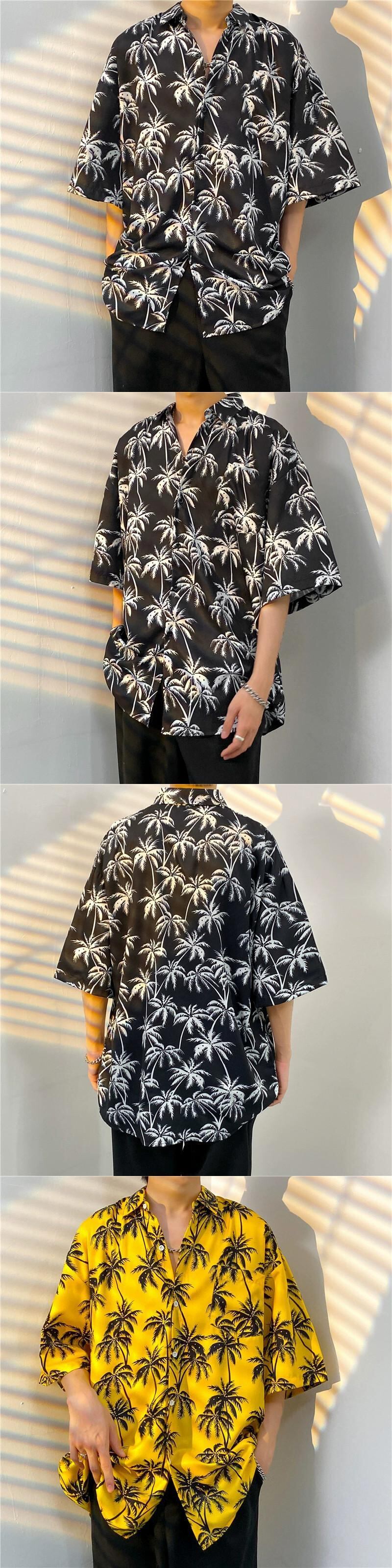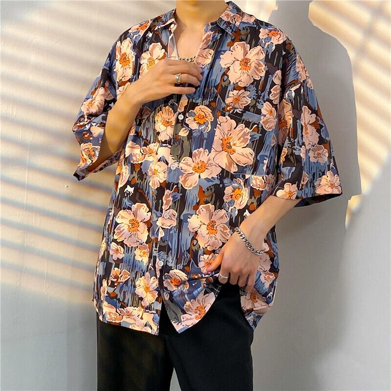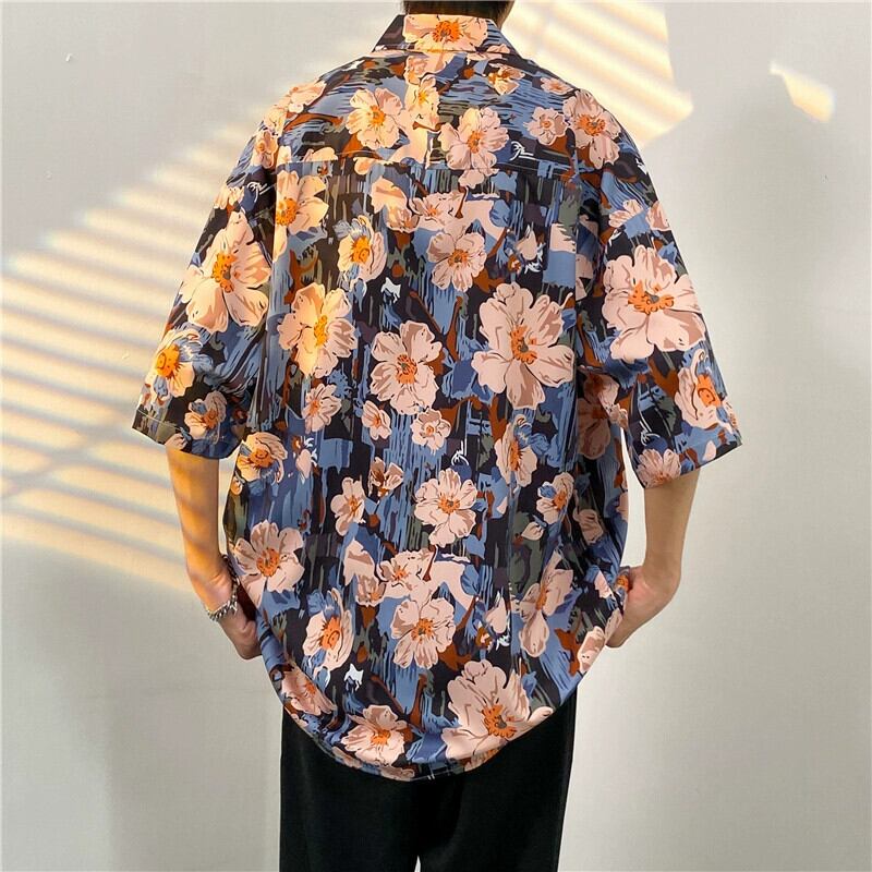 ハワイアンフラワーシャツメンズ半袖ルーズビーチシャツヴィンテージ香港スタイルインレトロ悪党ハンサムカップルジャケット男 フラワーデザイン ビンテージ 1285116230968809