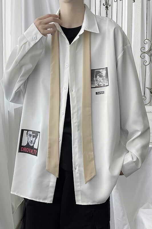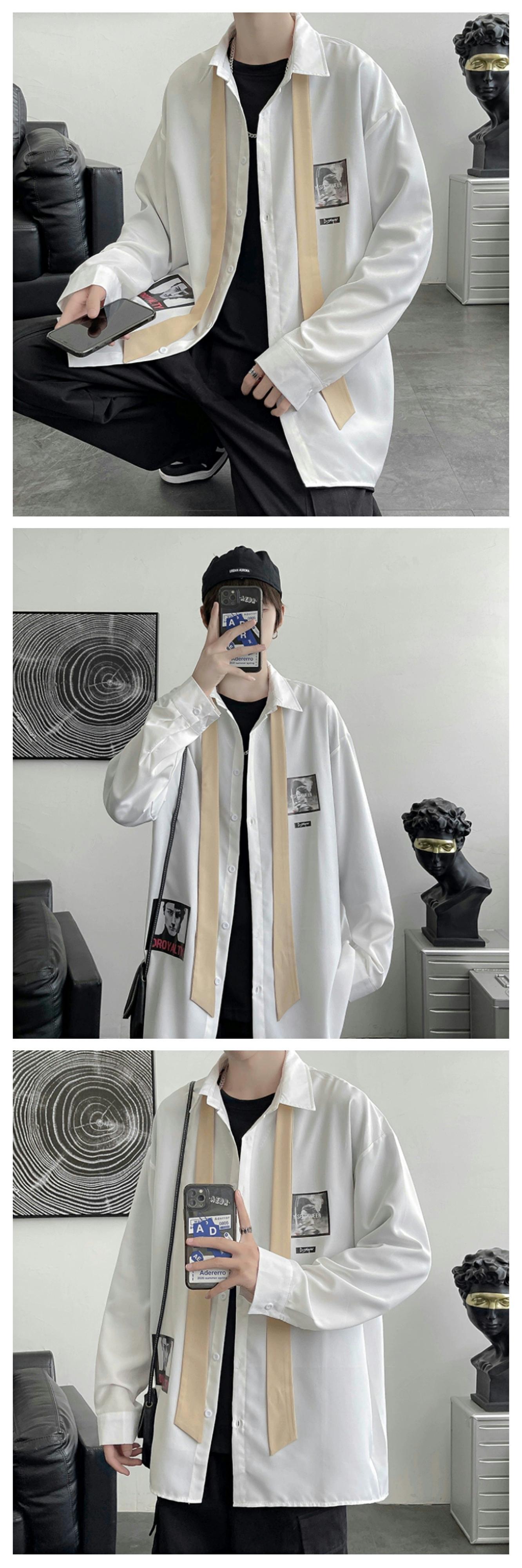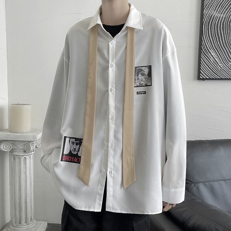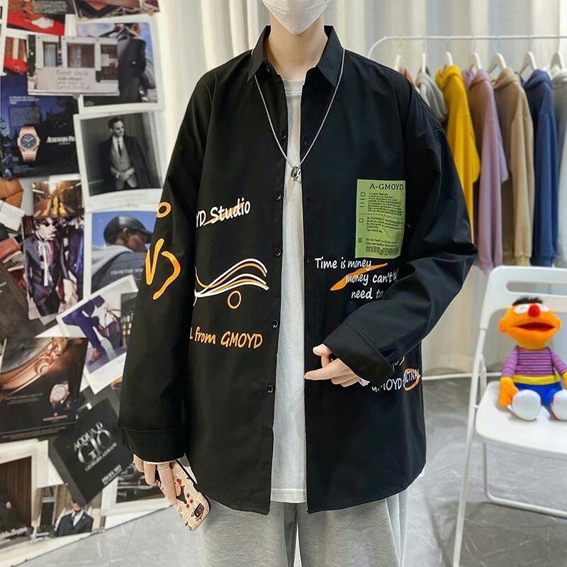 インスメンズ長袖シャツ春秋バージョントレンドゆったりハンサムカジュアルプリント学生ハンサムシャツジャケット ロング スプリング 春物 オータム 秋物 1285117025241955