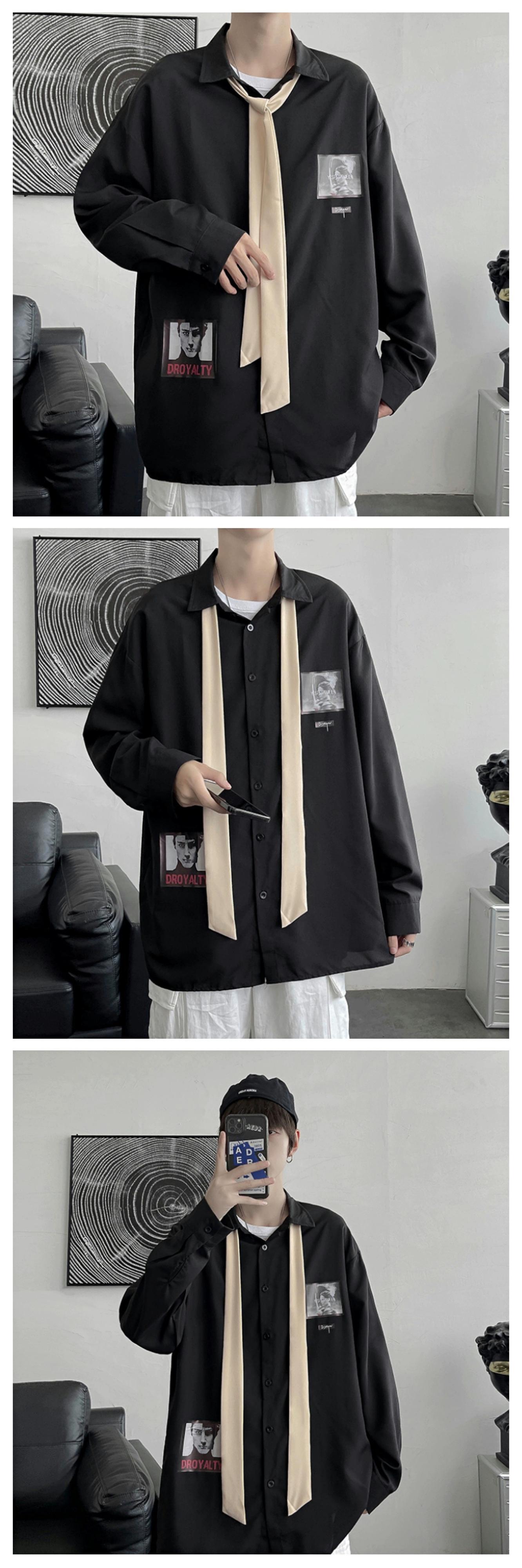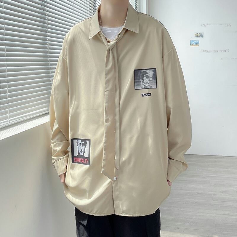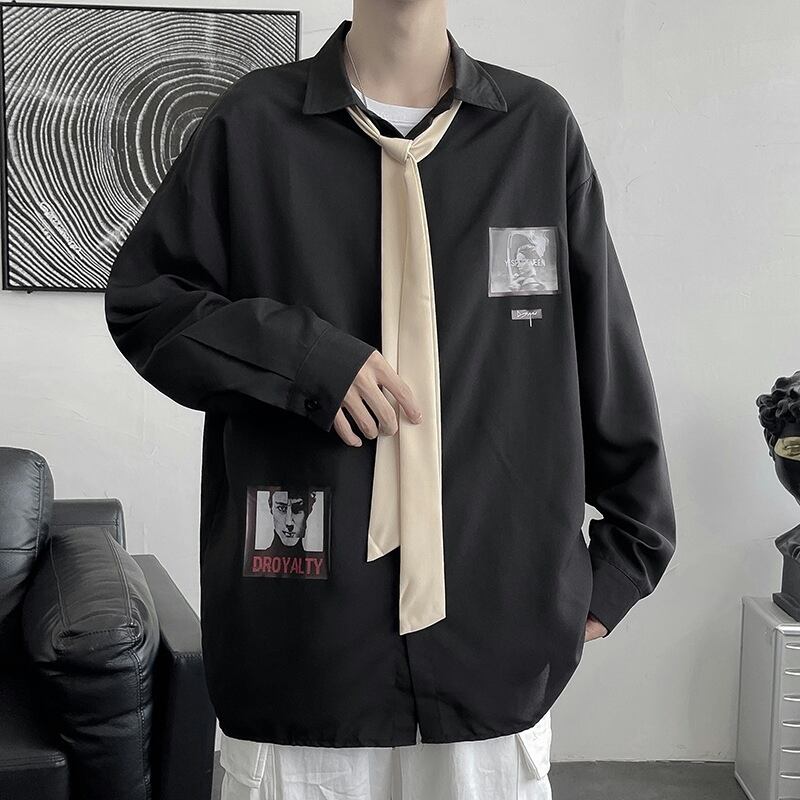 シャツメンズデザインセンスニッチプリントシャツイン潮ブランド香港スタイル文学ファン学生春秋長袖ジャケット ロング スプリング 春物 オータム 秋物 1285150873859994