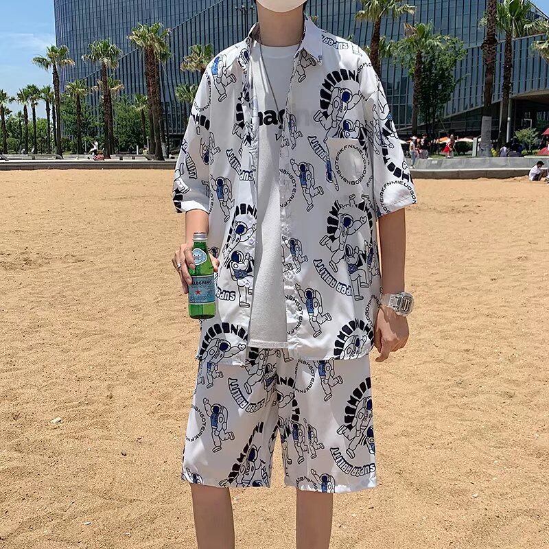 ハワイ海辺のバカンスウェア ビーチシャツ スーツ メンズ 高級感 荒くれ男前 半袖シャツ ショーツ 2点セット ブルマー 1285132156275249