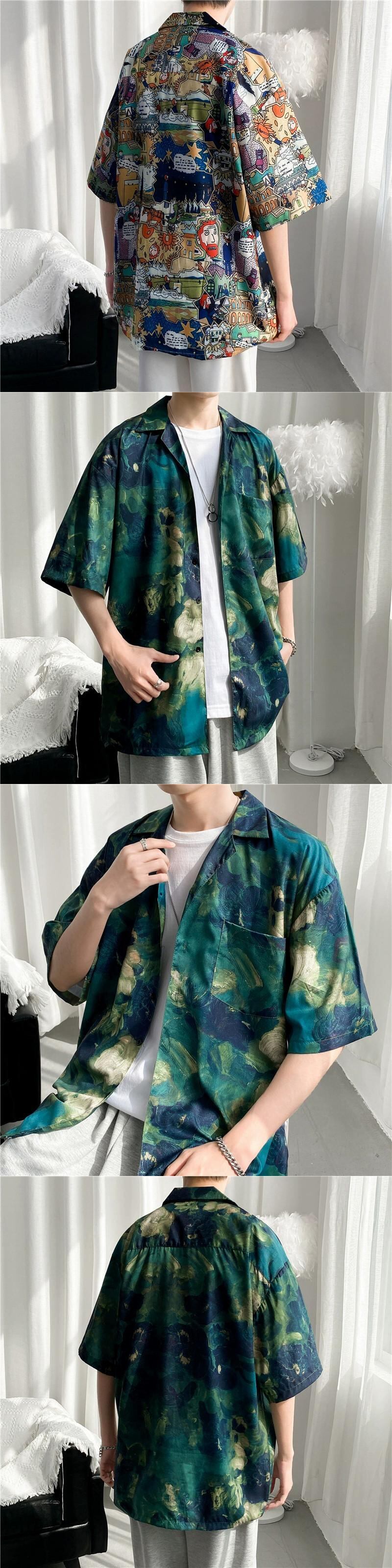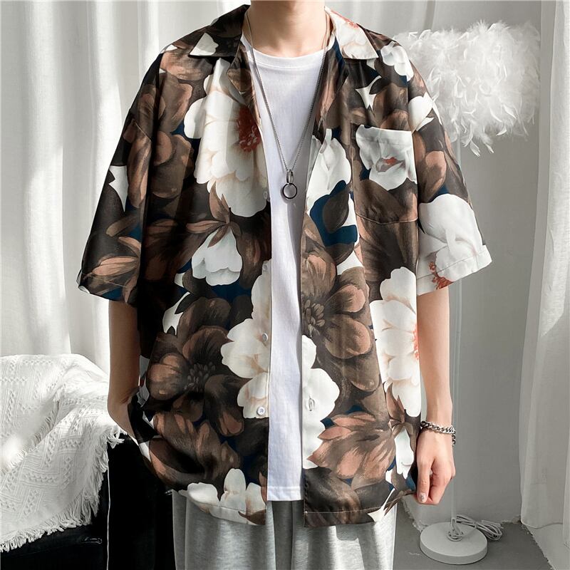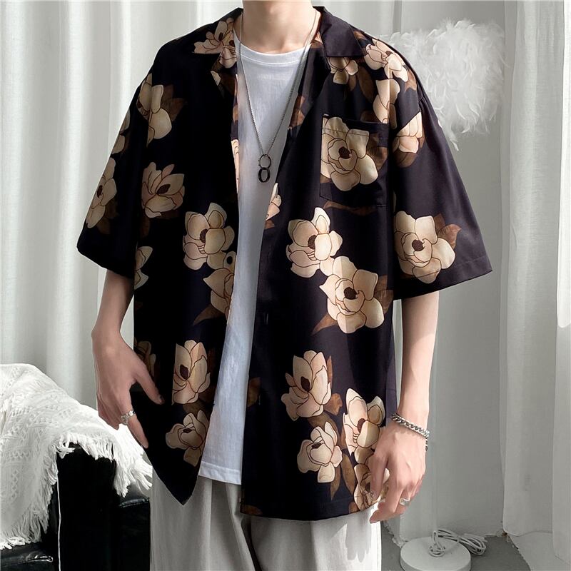 昔ながらのレトロな花柄半袖キューバ襟フラワー シャツ ese レトロな男性と女性のヴィンテージ タイ ハワイ フラワーデザイン ビンテージ 1285169484346335