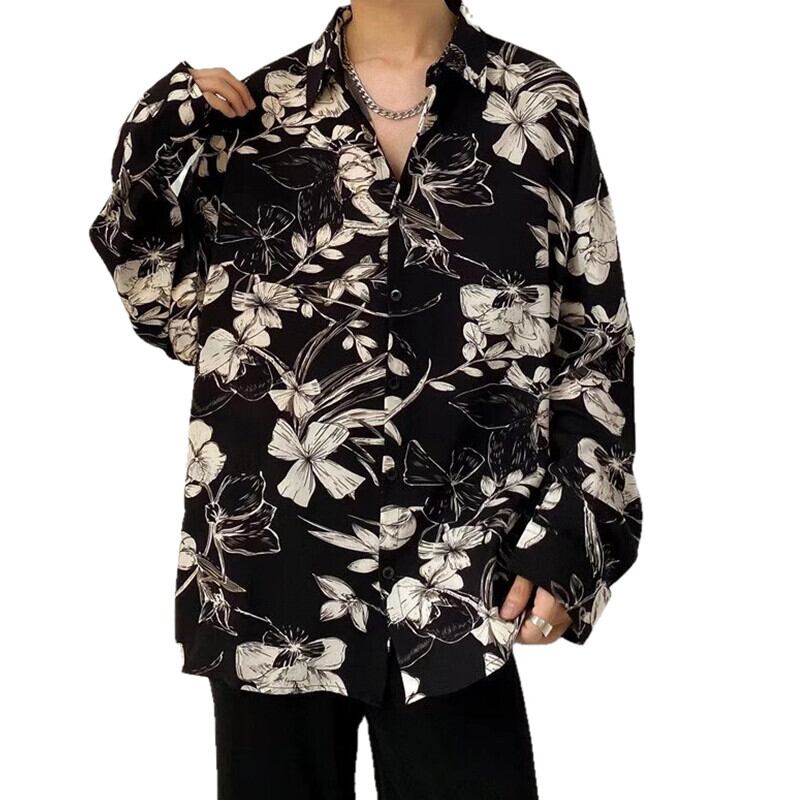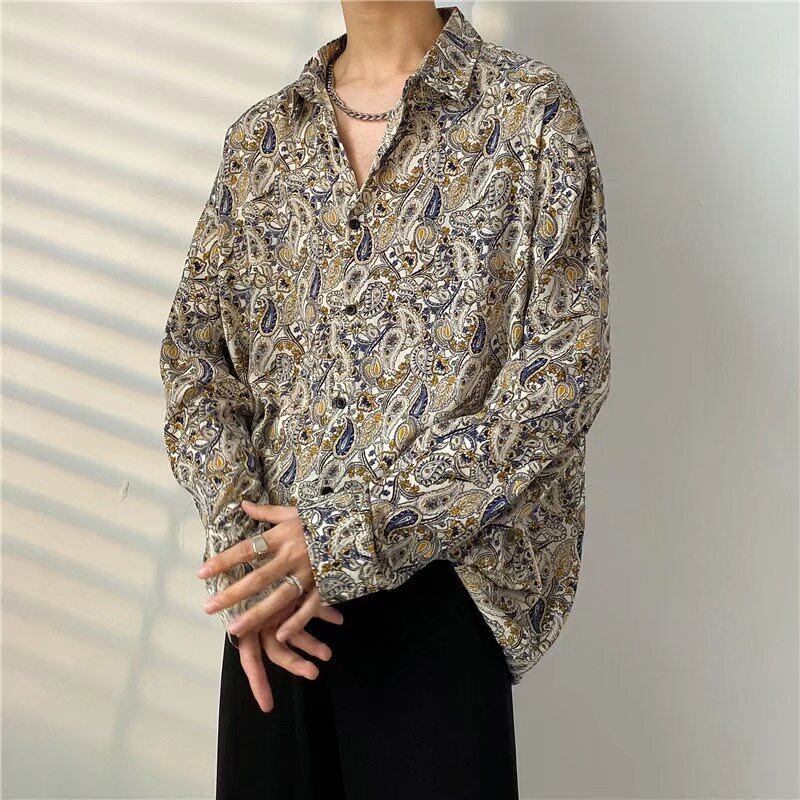 ese レトロインオールマッチ長袖シャツメンズ春秋香港風味ハワイアンビーチカップル花柄シャツジャケット潮 ロング スプリング 春物 オータム 秋物 128515020115883