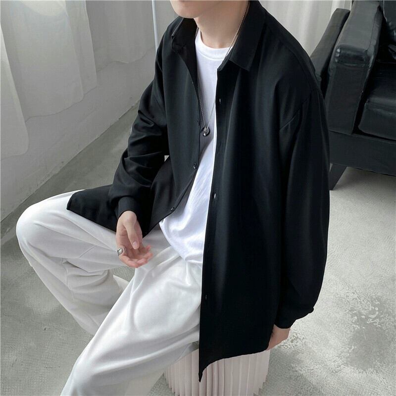 無頼漢ハンサムシャツメンズ香港スタイル ese カジュアル長袖シャツスタイルトレンディなルーズコートイン春と秋のトップ服 ロング スプリング 春物 オータム 秋物 128518300364786