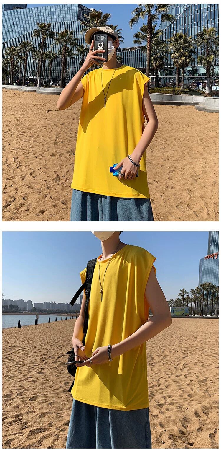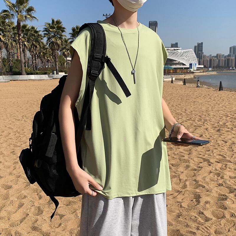 ティーン夏シンプルなオールマッチノースリーブ Tシャツ男性バージョントレンドスポーツベストカップル無地ボトミングベスト サマー 夏物 ソリッドカラー 1285137684760463