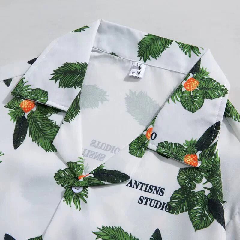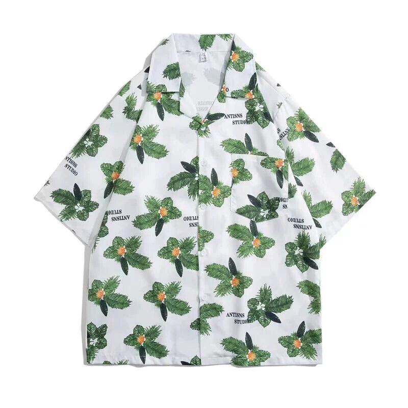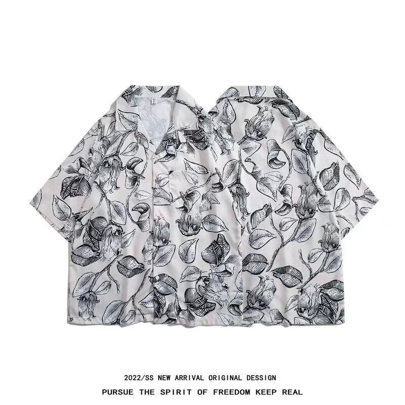 香港風キューバンカラーヴィンテージフラワーシャツ半袖タイ風ハワイアンデザイン感ハンサムでルーズなシャツ男女兼用 フラワーデザイン ビンテージ 1285133367945958