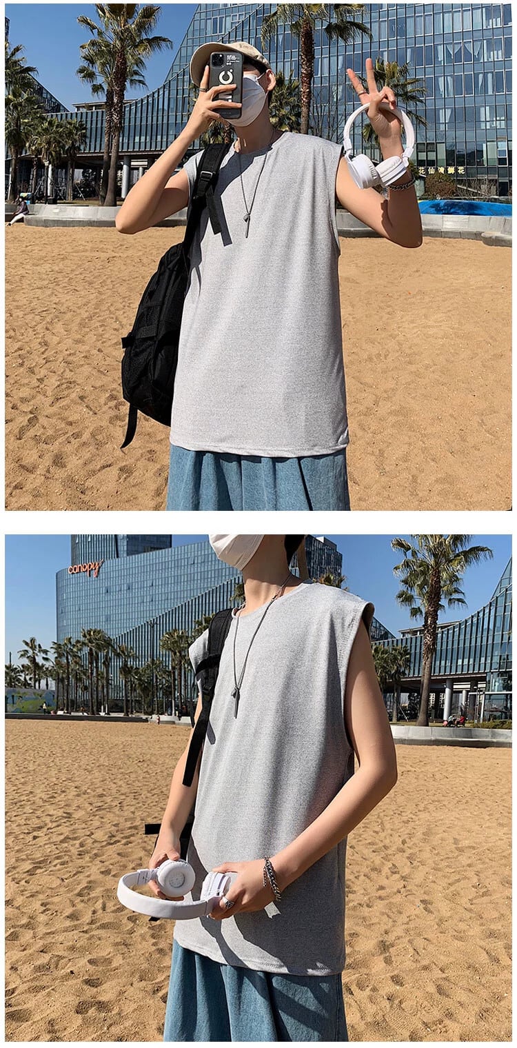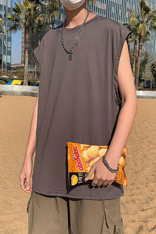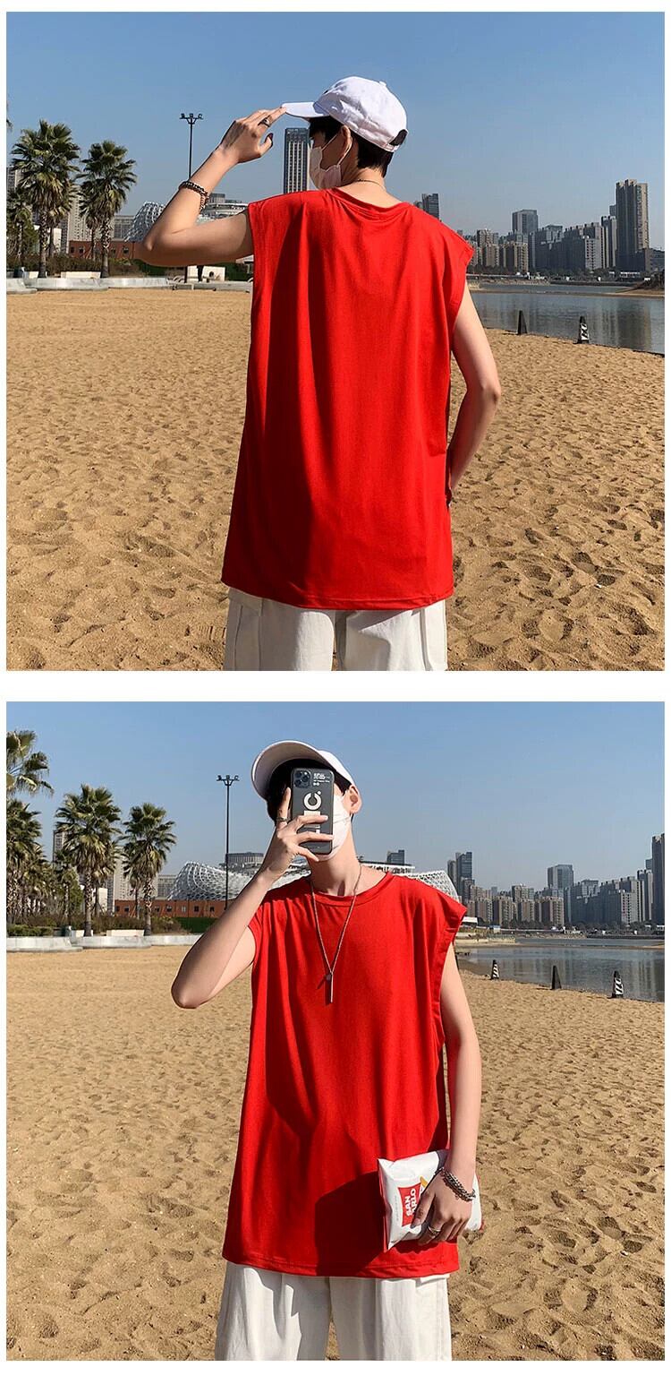 夏無地ベストメンズルーズ大きいサイズスポーツベストアウター香港スタイルベスト肩イン潮ブランドトレンドノースリーブ tシャツ 大きめサイズ サマー 夏物 ソリッドカラー 1285115981801988