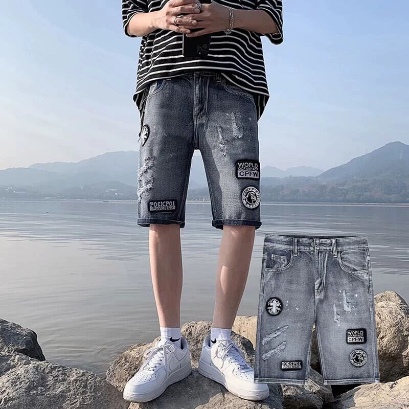 ヨーロッパステーションメンズデニムショートパンツ夏の5点パンツトレンディなスリムパンツカジュアルミッドパンツ弾性パンツ5点 エラスティック 伸縮 サマー 夏物 ショーツ ブルマー ヨーロピアン 1285183796135850