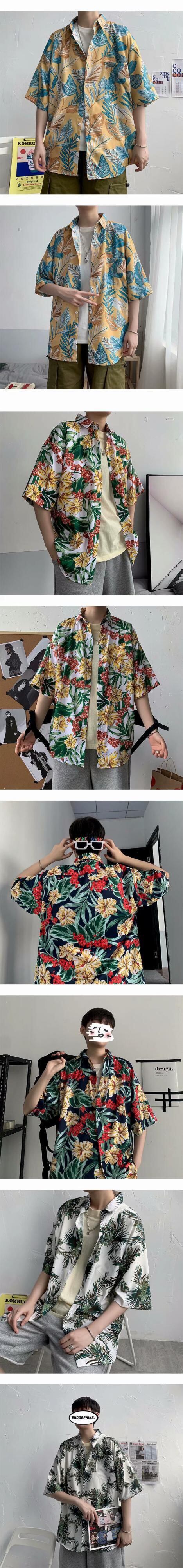 ハワイビーチカップル着用夏花シャツ半袖冷たい風ニッチデザインセンス香港スタイルレトロシャツ男性 サマー 夏物 フラワーデザイン 1285121782930168