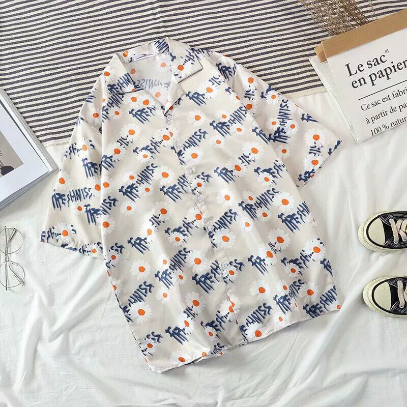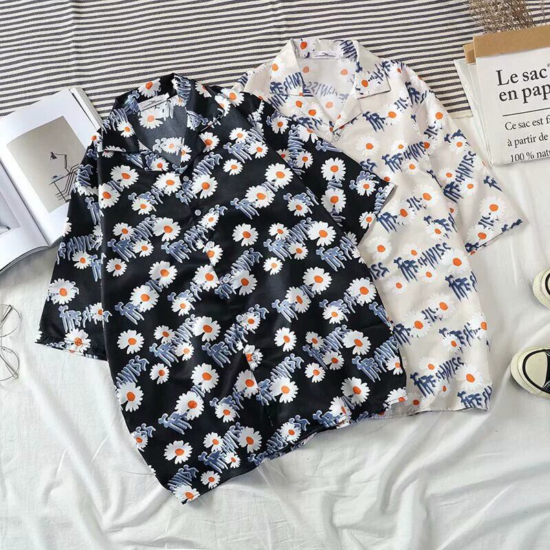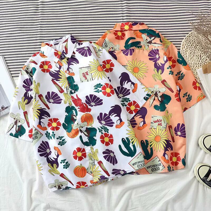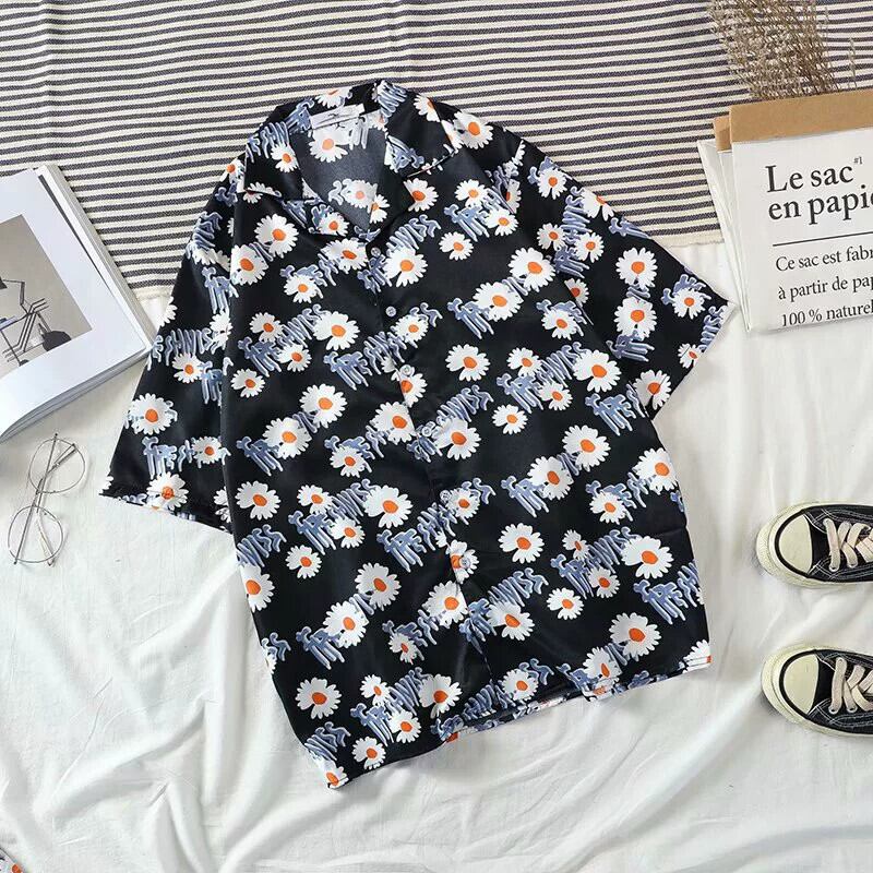 ese ins 香港スタイル夏半袖フラワーシャツ男性と女性のレトロなならず者ハンサムなハワイアンビーチカップルルーズシャツ サマー 夏物 フラワーデザイン 1285159313283734