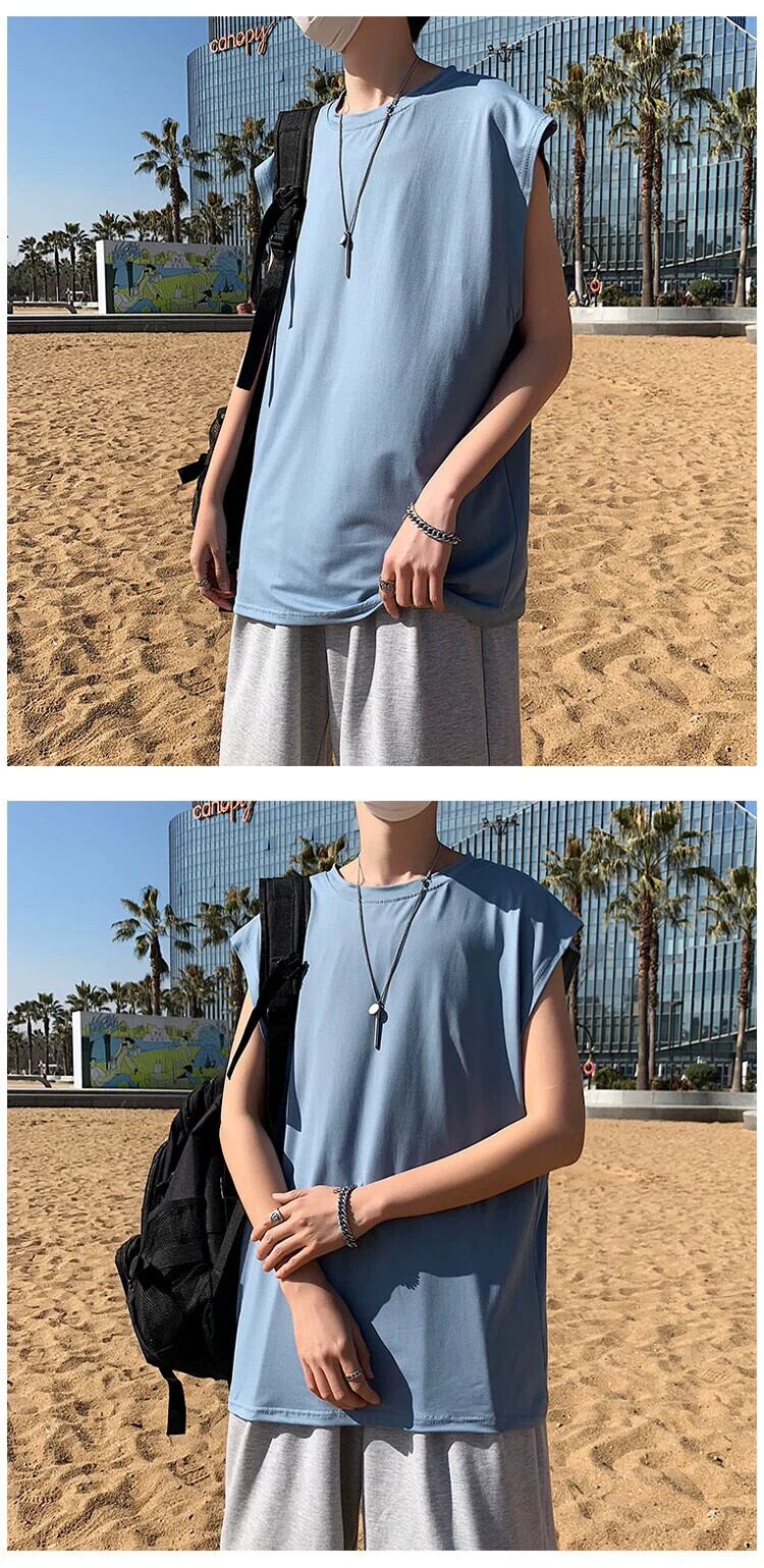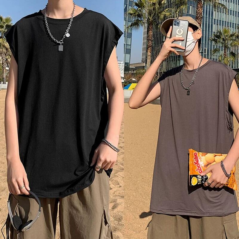 夏のトレンドスウェットベストメンズカジュアルバージョンのラウンドネックTシャツティーンエイジャーネットレッドルーズノースリーブベスト サマー 夏物 Oネック 1285144793108881
