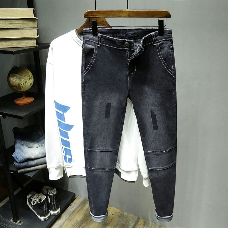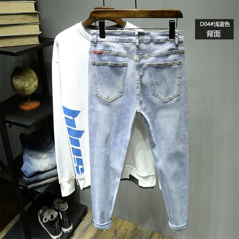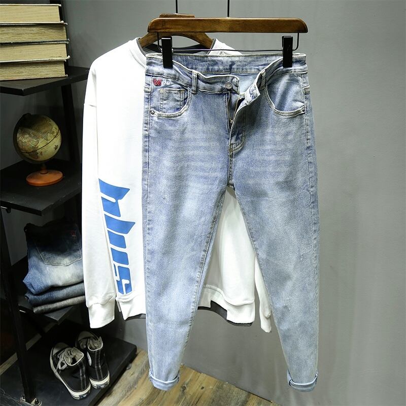 ハンサムなメンズ レトロ ジーンズ ユース バージョンのオールマッチ 9 点パンツ学生秋の足弾性メンズ パンツ エラスティック 伸縮 オータム 秋物 1285166436958634