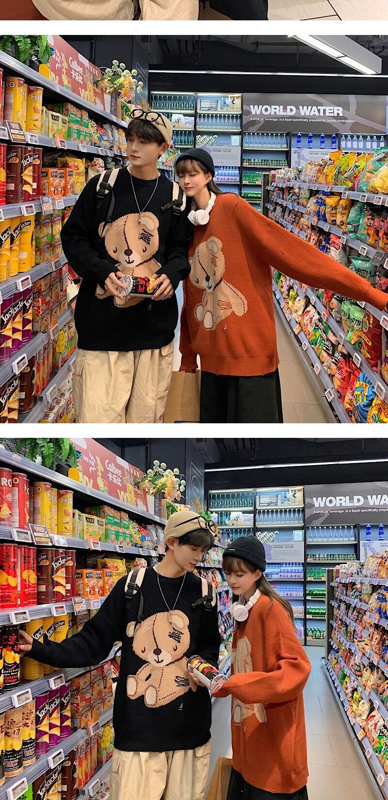 秋と冬のイン漫画クマプリントセーターメンズトレンディなブランドルーズカップル着用カジュアルトレンドセータートップ オータム 秋物 ウィンター 冬物 1285172242224433