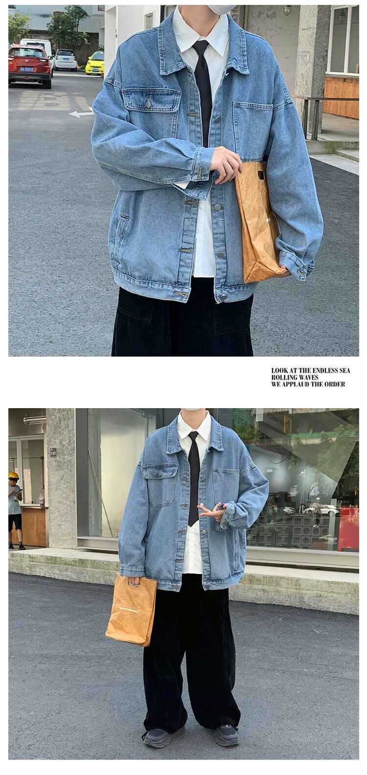デニムジャケットメンズ春と秋の新しいトレンドブランドイントレンドルーズトップカジュアルオールマッチレトロツーリングジャケット スプリング 春物 オータム 秋物 1285145606382328