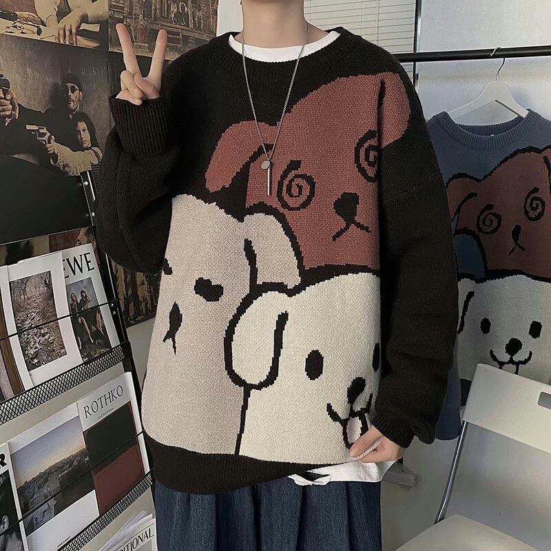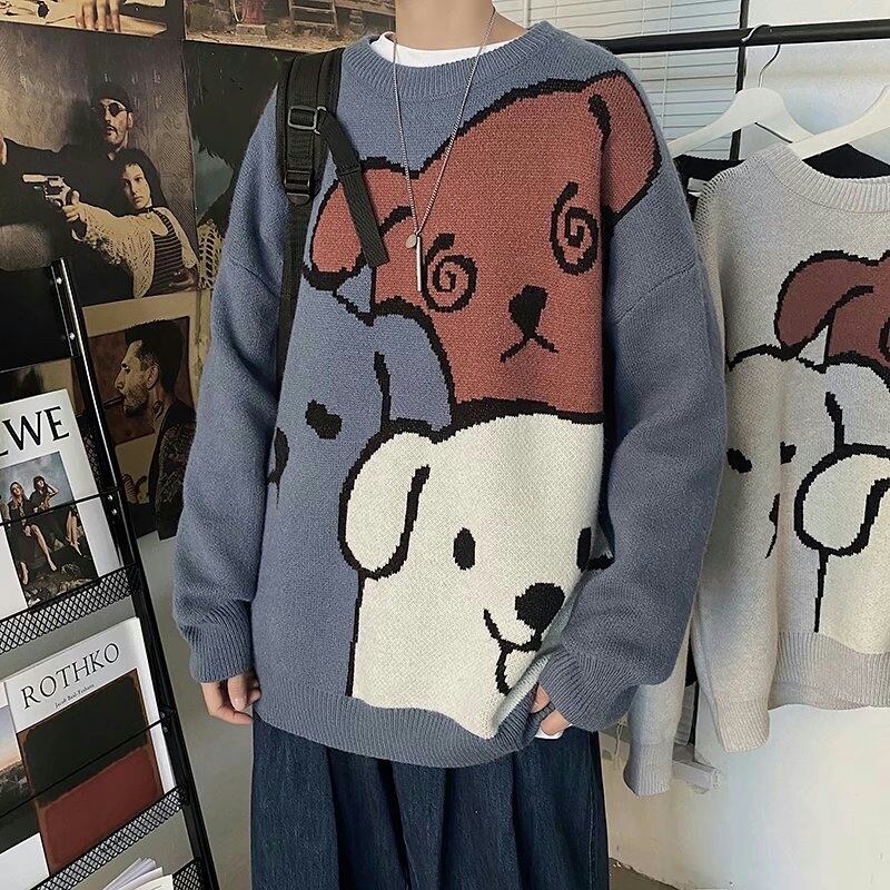 子犬ジャカードセーターメンズ秋冬高度なセンスラウンドネックプルオーバーニットウェア eign スタイルコート気質 オータム 秋物 ウィンター 冬物 Oネック 1285198559545256