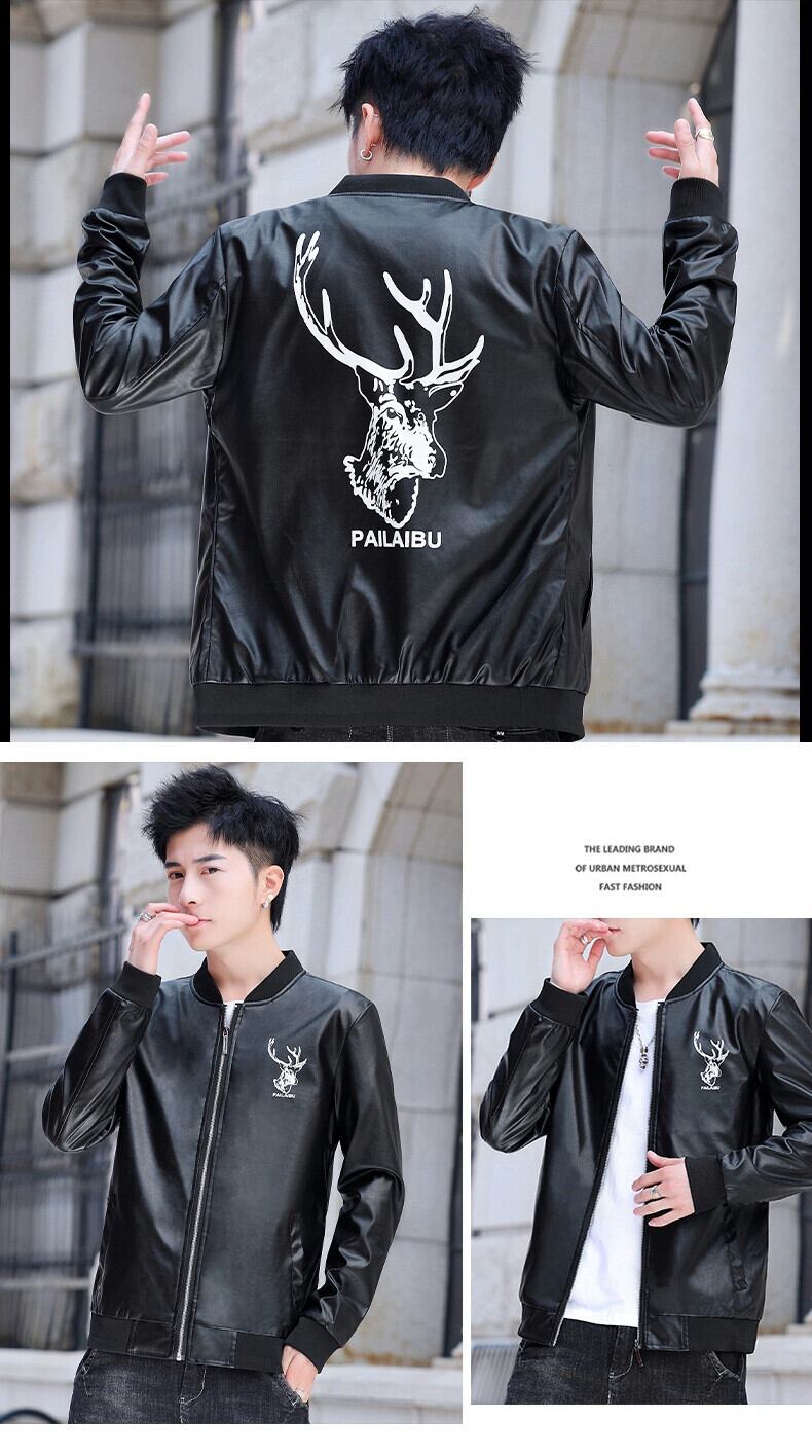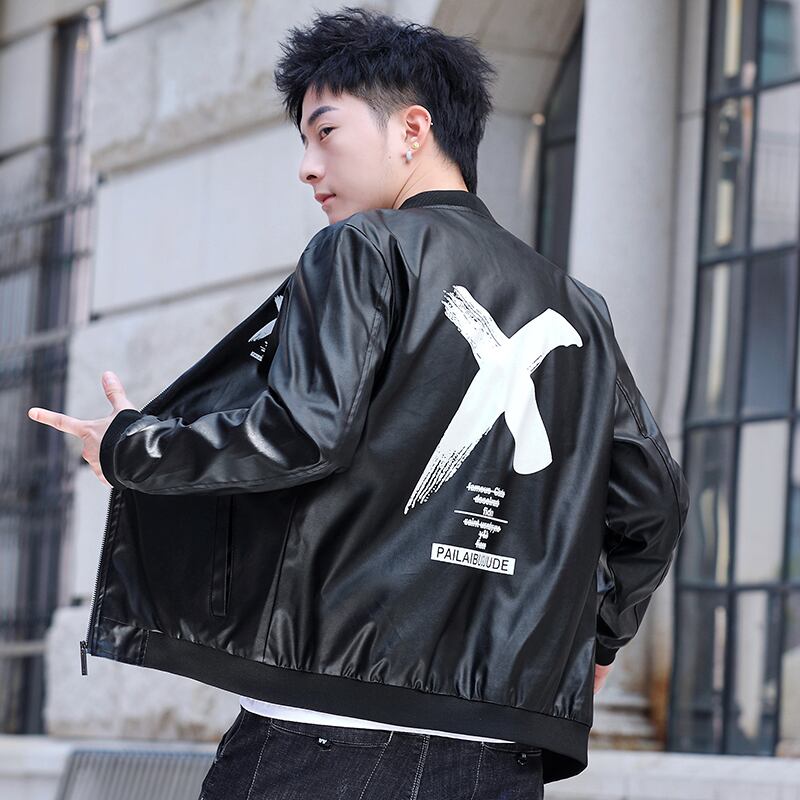 アビエータージャケット男性ティーンエイジャー中学生トレンディな機能風スタンドカラーキャップレスPUレザー春秋スリムジャケットレザージャケット スプリング 春物 オータム 秋物 1285141190692279