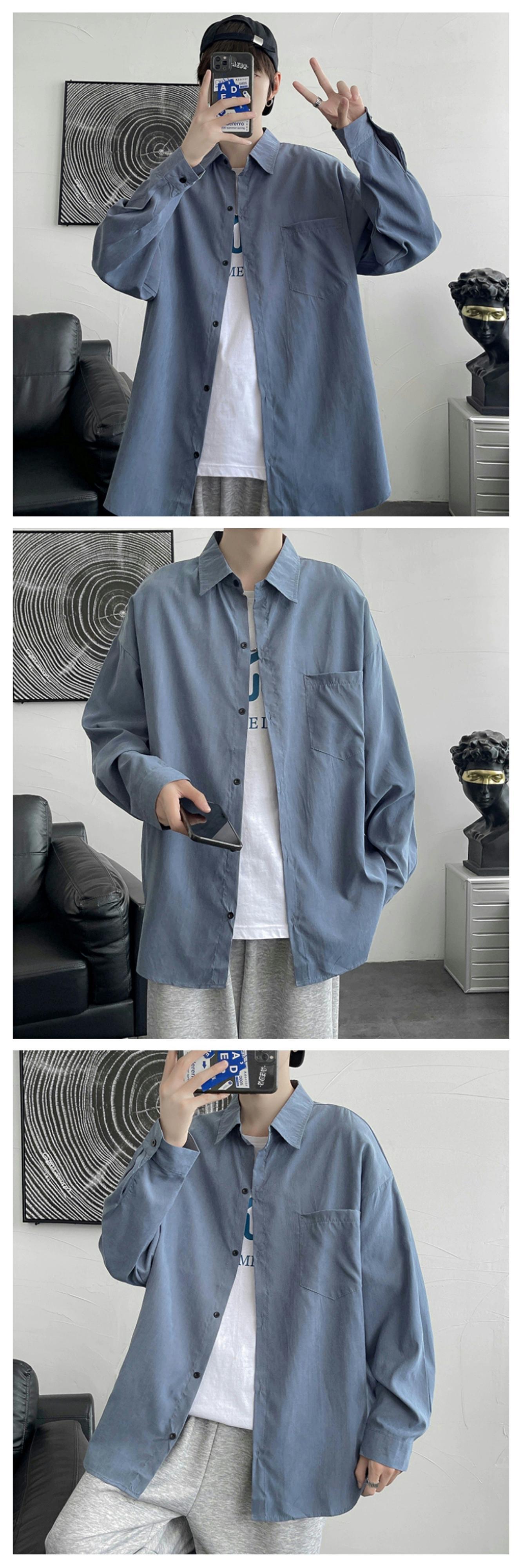 若者のならず者ハンサムなシャツメンズ長袖薄いセクション春と秋の潮カジュアルルーズ香港スタイル ese dk シャツジャケット ロング スプリング 春物 オータム 秋物 1285195213367211