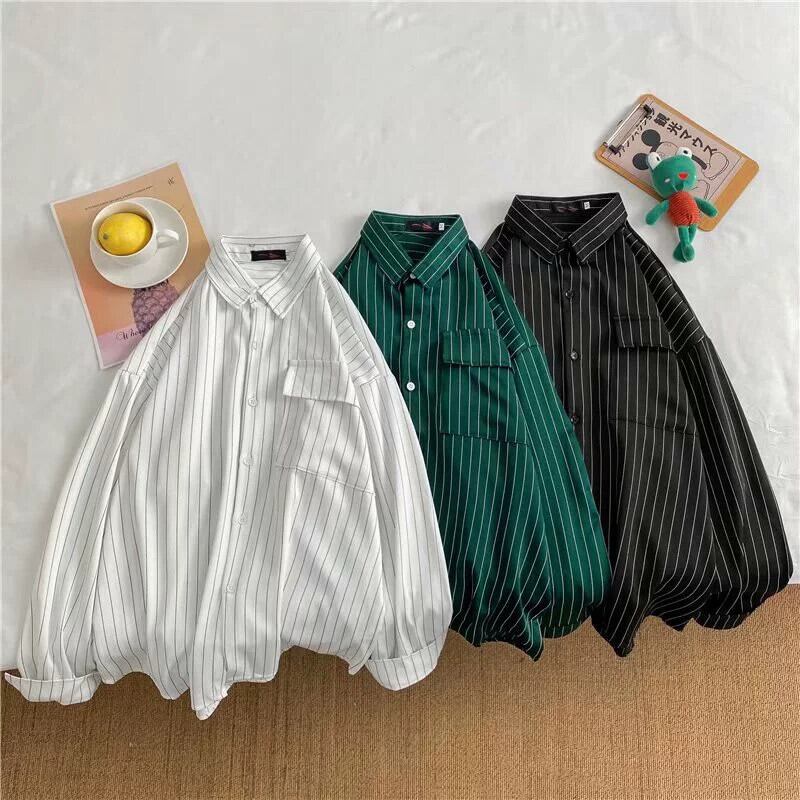 2021 新ストライプシャツメンズ長袖春と秋のトレンドルーズオールマッチインカップルカジュアルシャツジャケット ロング スプリング 春物 オータム 秋物 1285140234525904