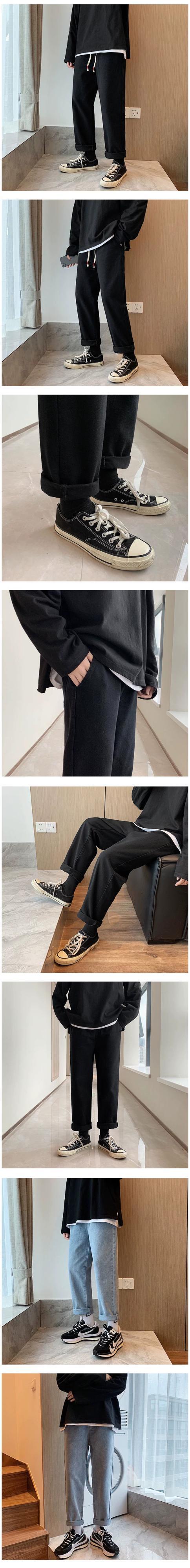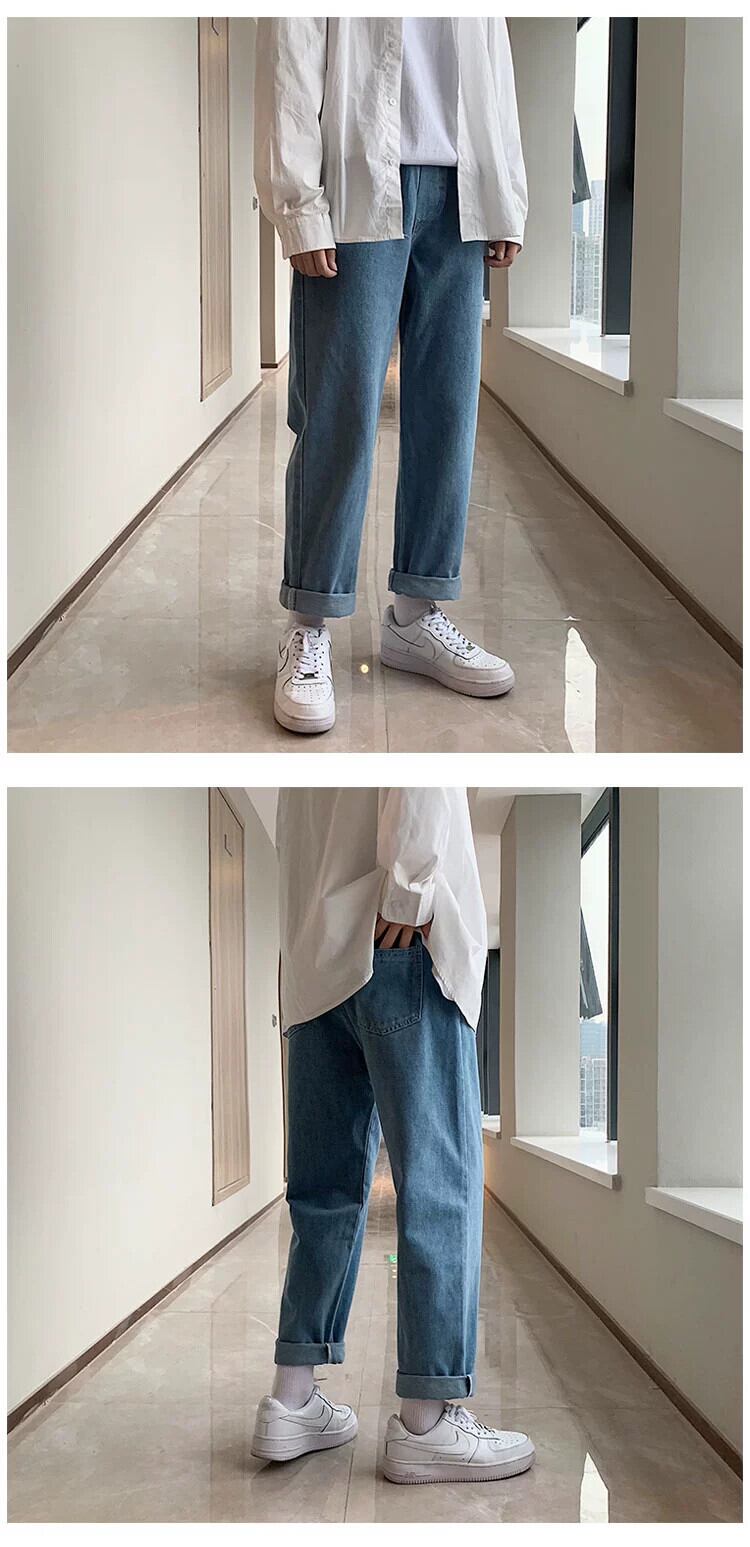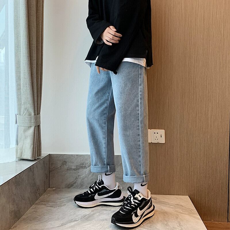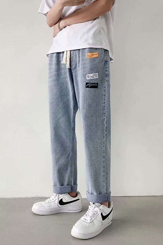 学生ジーンズ男性バージョンルーズストレートチューブユースカジュアル弾性タイロープ9点中学生パンツ エラスティック 伸縮 1285133035118636