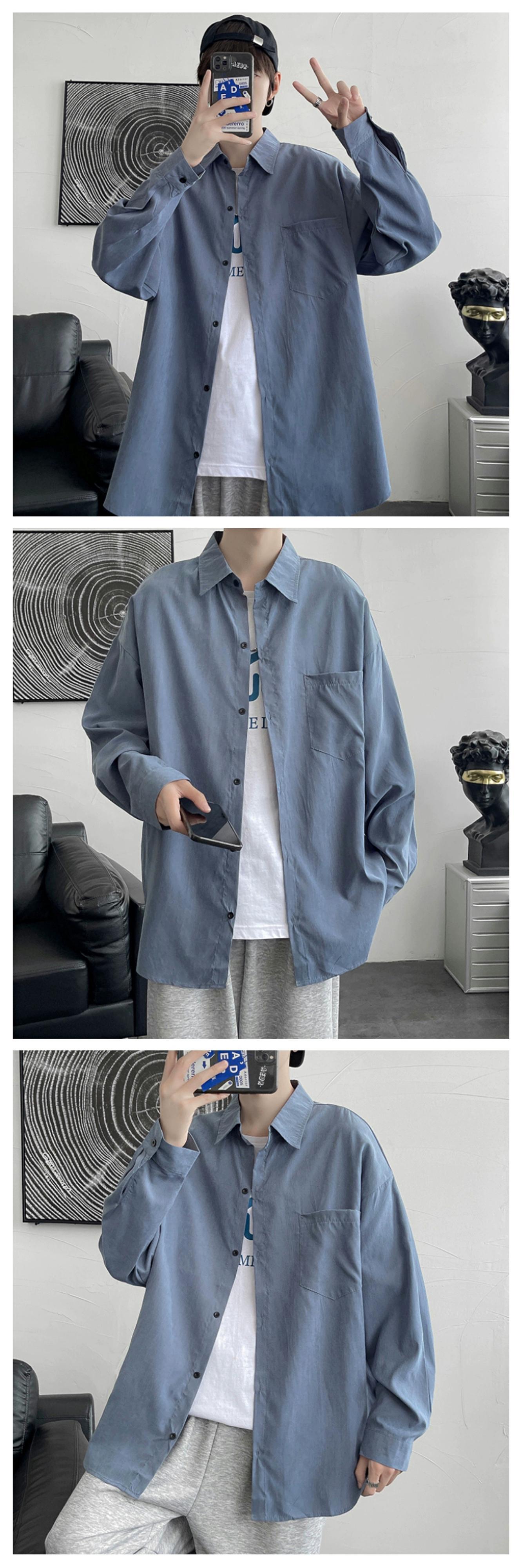 春と秋のシャツメンズ長袖若者香港スタイルシャツハンサム学生トレンドツーリングインジャケット ロング スプリング 春物 オータム 秋物 1285182780655425