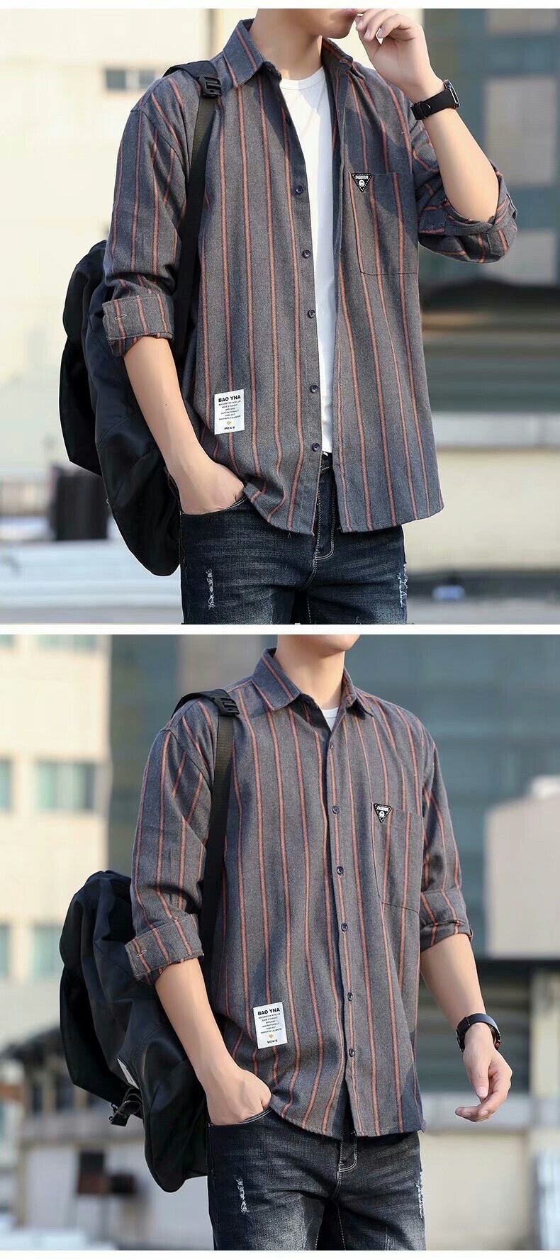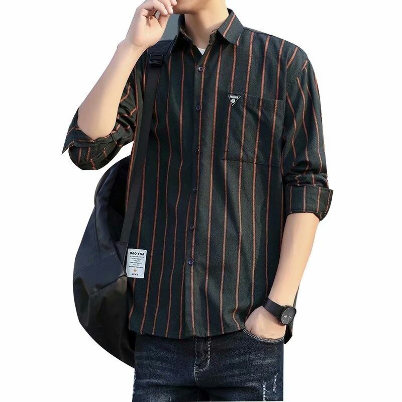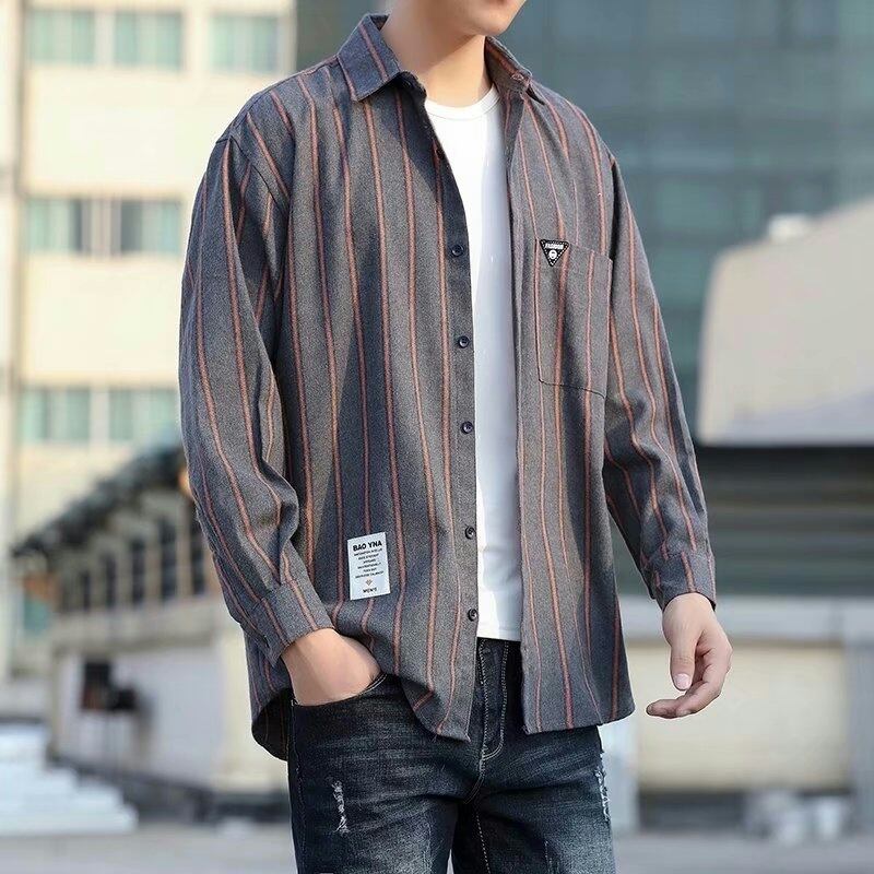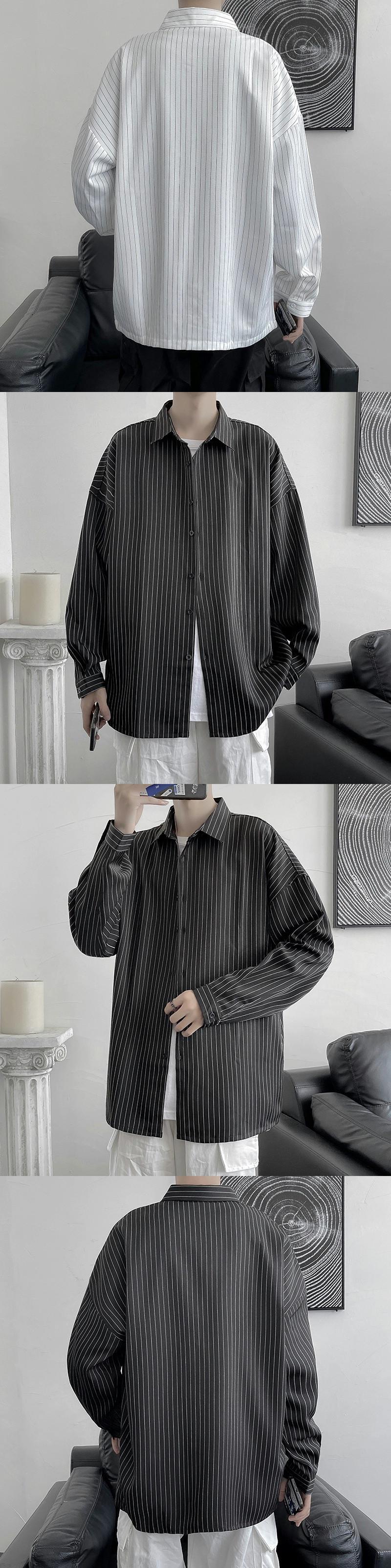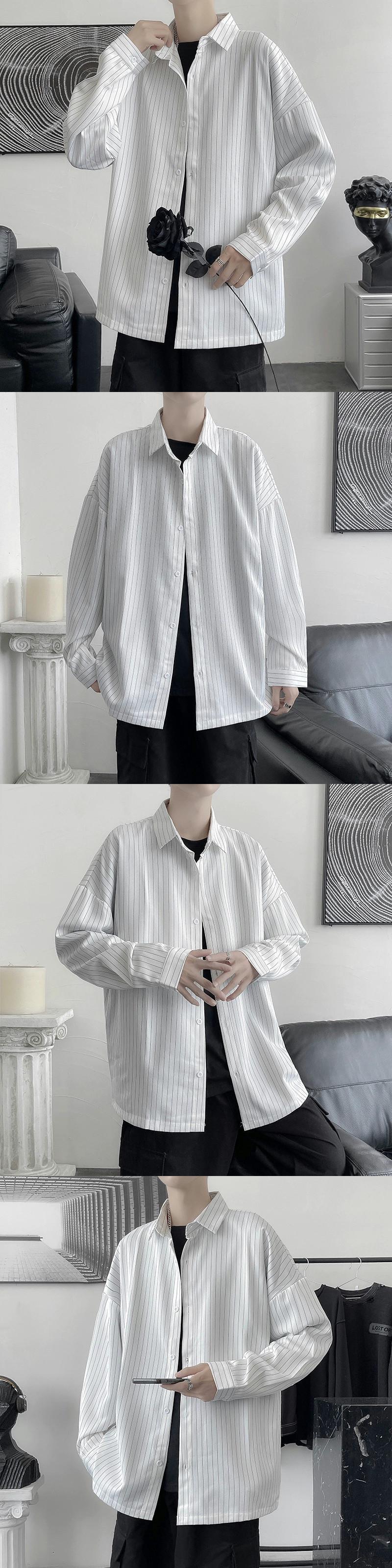 縦ストライプ長袖シャツメンズ春秋シンプルオールマッチゆったり大きいサイズイントレンド薄手シャツ ロング 大きめサイズ スプリング 春物 オータム 秋物 1285146718784911