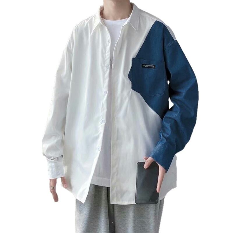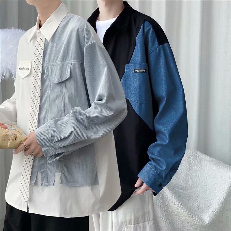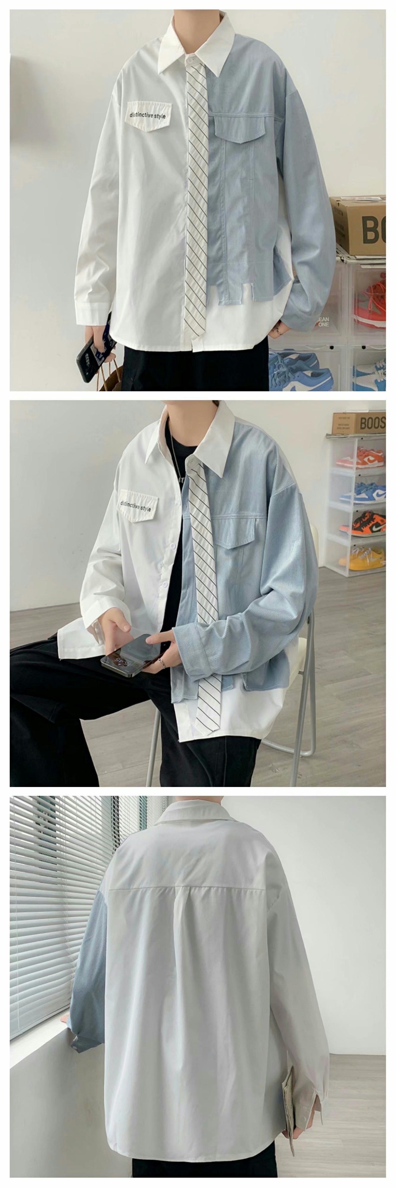 フェイクツーピースシャツボーイズ秋トレンドバージョンのトレンディブランドオールマッチデザイン香港スタイルジャケットアウター長袖シャツ ロング オータム 秋物 1285136966558523