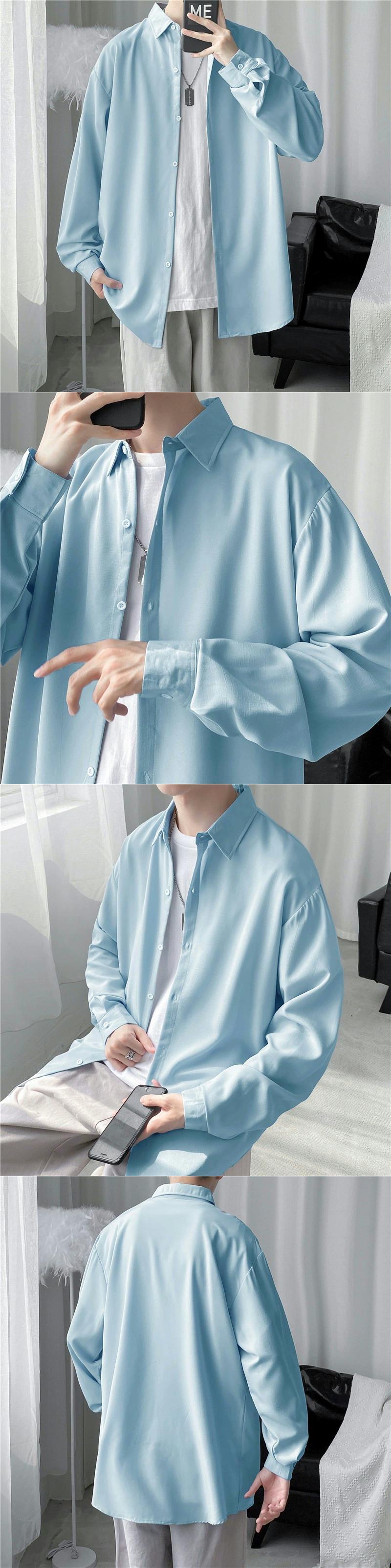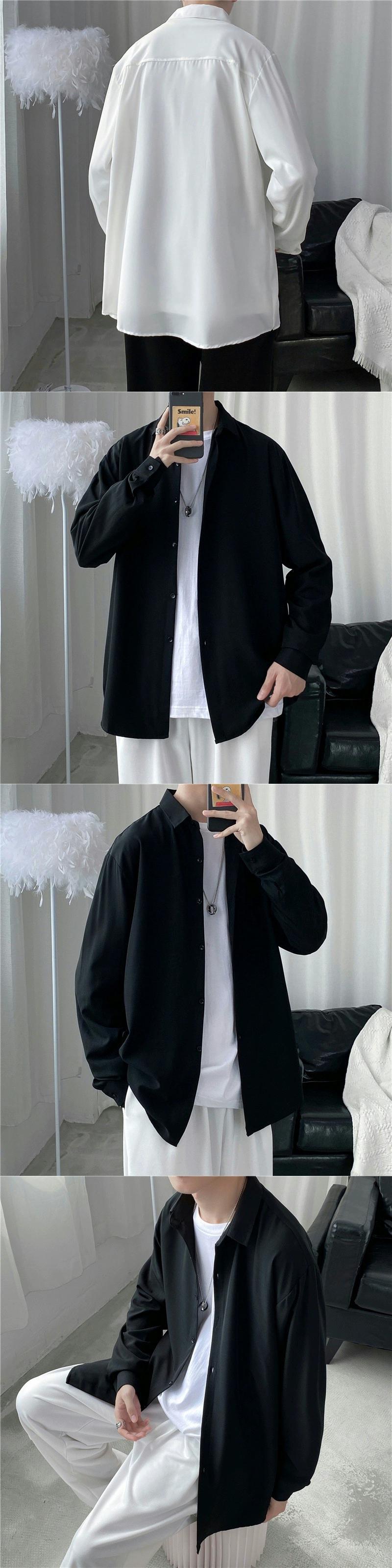 非常に妖精のトップメンズならず者ハンサムバージョンの禁欲メンズシャツ長袖トレンディな香港スタイルの春と秋のシャツ ロング スプリング 春物 オータム 秋物 1285185862779488