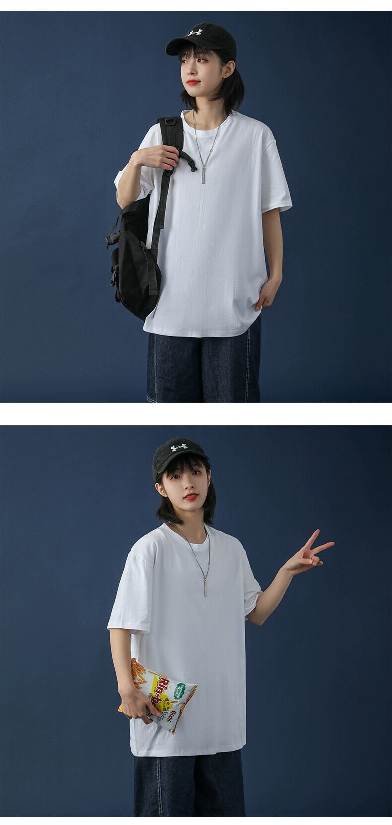 ese Bunraku 潮ブランドメンズ tシャツ半袖シャツカップル無地綿底シャツ夏の学生 tシャツ bf コットン サマー 夏物 ソリッドカラー 1285127861629077