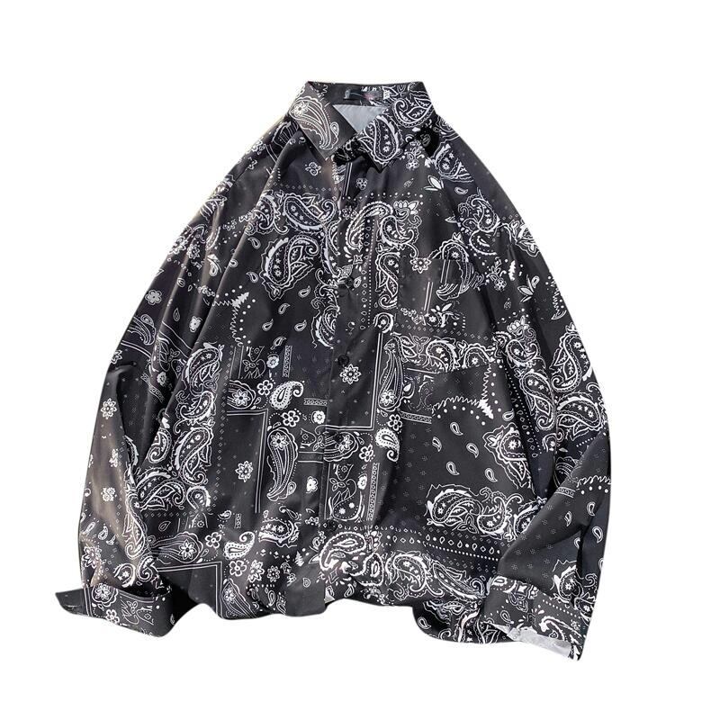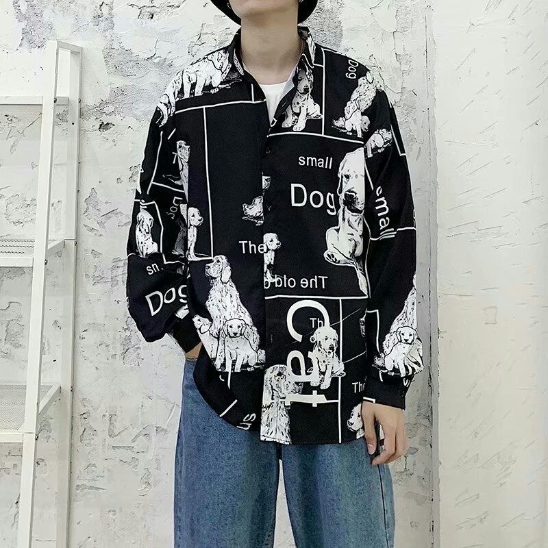 香港スタイルの悪党ハンサムなトレンディなプリントシャツメンズ長袖オールマッチ ese ファッションヒップホップハンサムルーズカジュアルシャツ ロング 1285143695754685