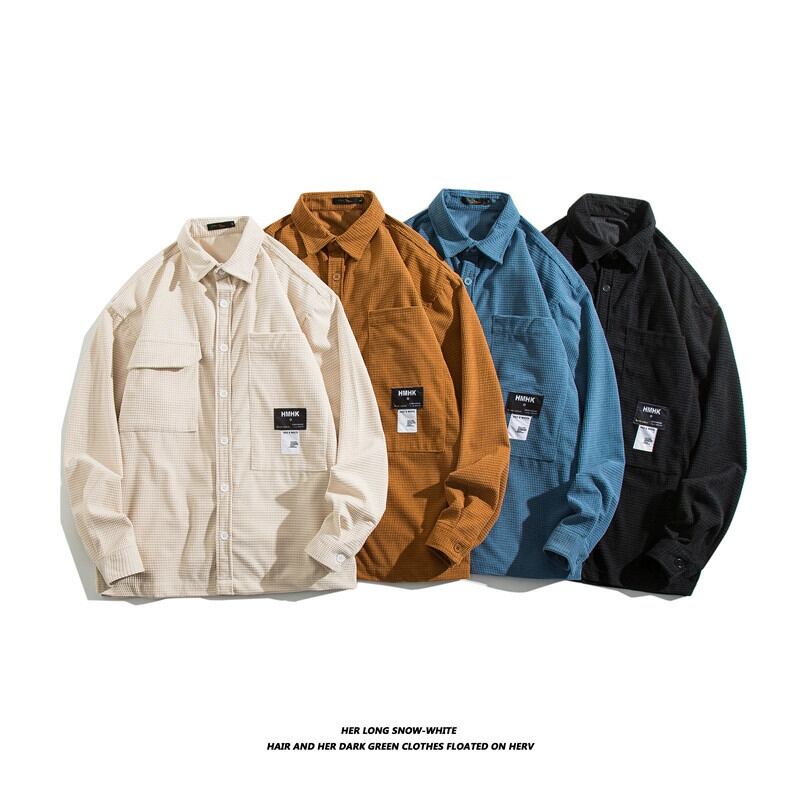 アメリカンスタイルワッフル高品質質感シャツメンズ春と秋のレトロなトレンディなブランドツーリングシャツカジュアルコートジャケット レッド スプリング 春物 オータム 秋物 1285181438392677