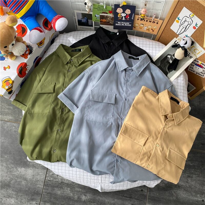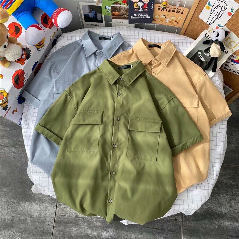 夏半袖シャツ男性ティーンエイジャーバージョンのスリム薄セクションデザインセンスニッチアウトドアウェア五分袖ツーリングシャツ サマー 夏物 1285141440589891