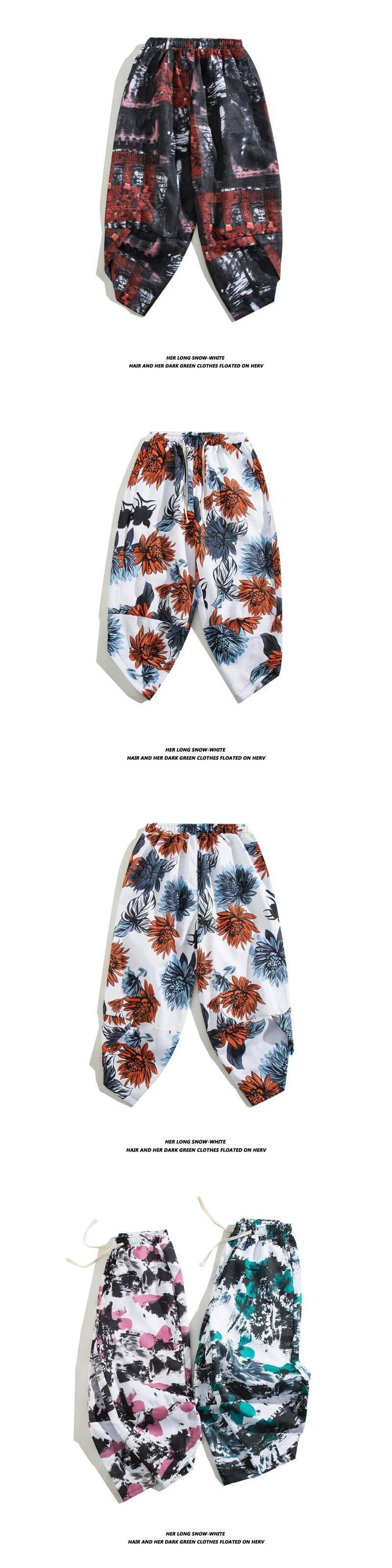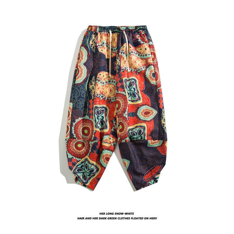 夏薄部クロップドパンツメンズショートパンツルーズキャロットパンツ7点ハーレムパンツビーチパンツ中国風ランタンパンツ サマー 夏物 ショーツ ブルマー 1285173009180494
