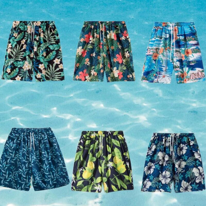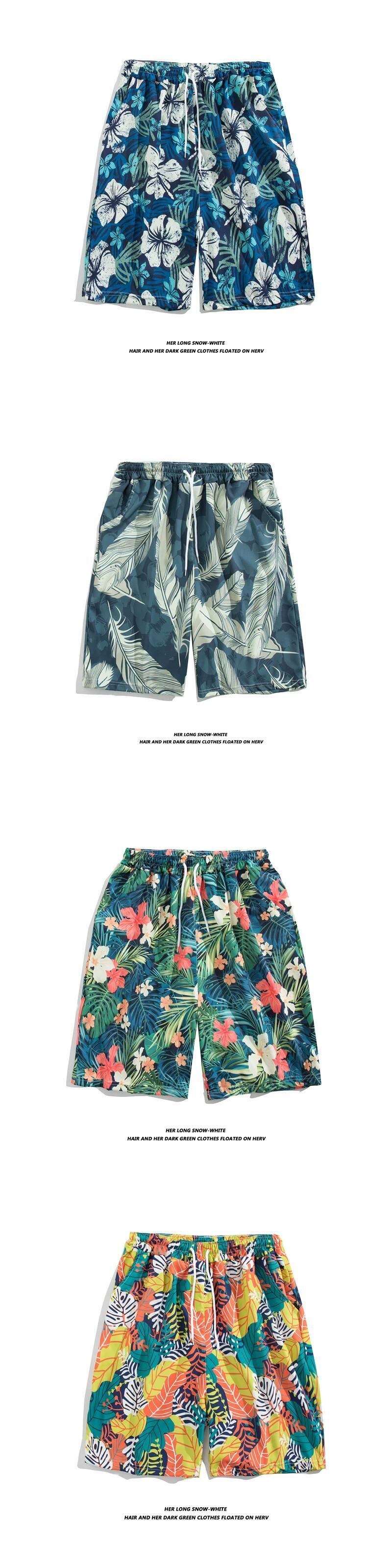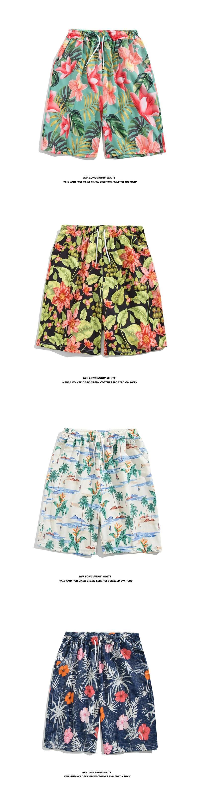 ハワイアンフラワーショーツメンズ夏三亜ビーチパンツカップル速乾ビッグパンツトレンディブランド薄い5ポイントアイスシルクパンツ サマー 夏物 ブルマー フラワーデザイン 1285187354091457