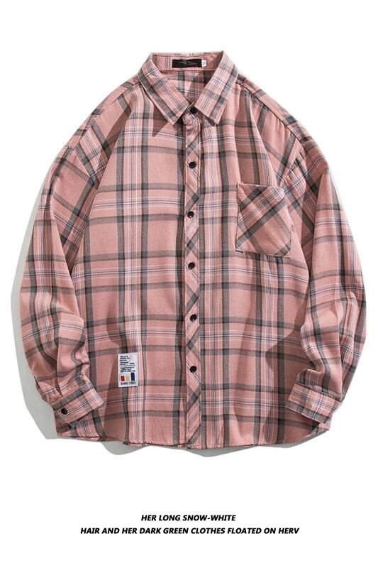 秋の香港スタイルメンズ長袖チェック柄シャツティーンエイジャー潮ブランドトレンドインバージョンのスリムシャツトップ男性 ロング オータム 秋物 1285120929566231