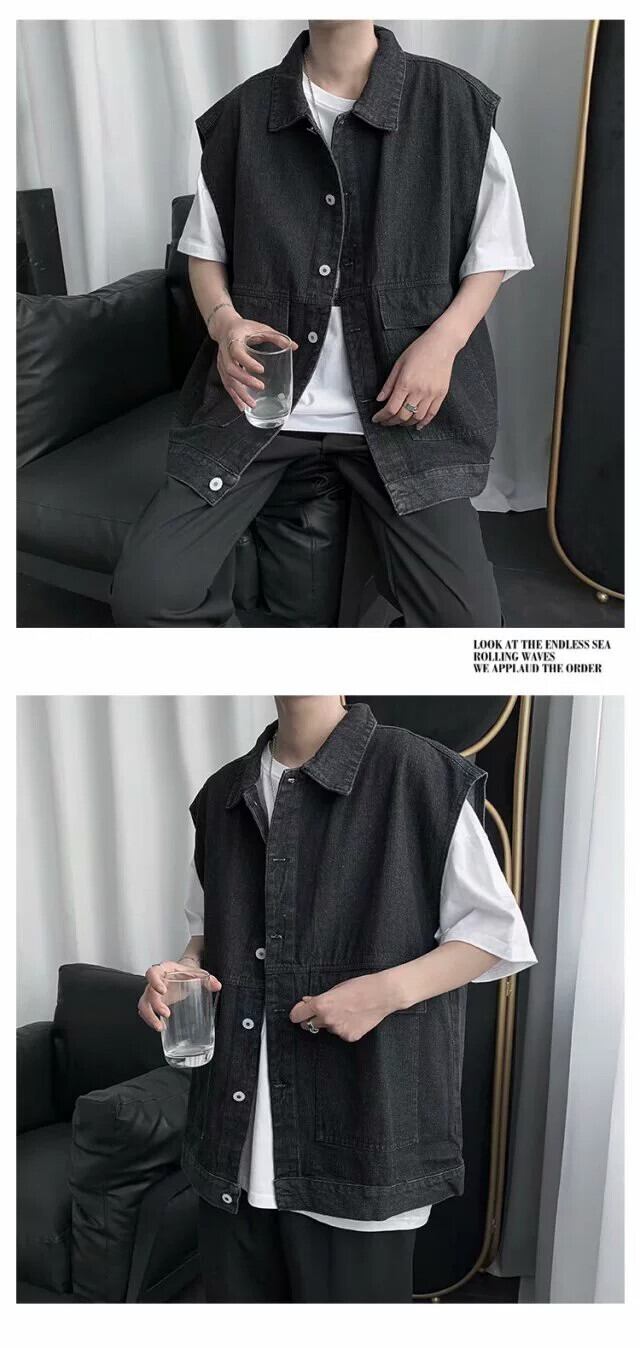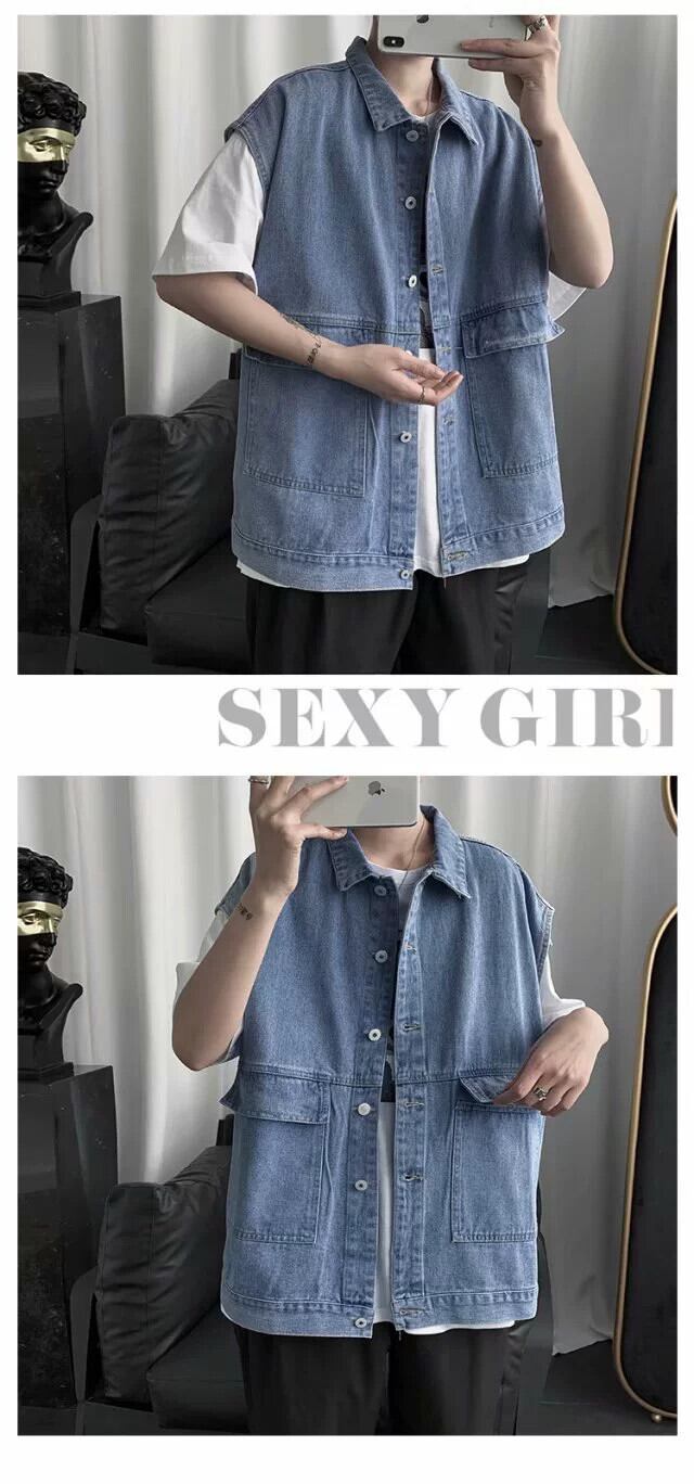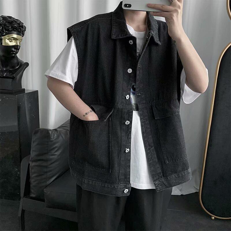 ショルダーデニムベスト中学生男子トレンドブランドインハンサムベストトレンド個性ツーリングジャケットオールマッチ 1285113834928001