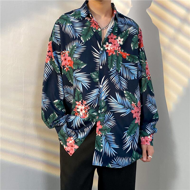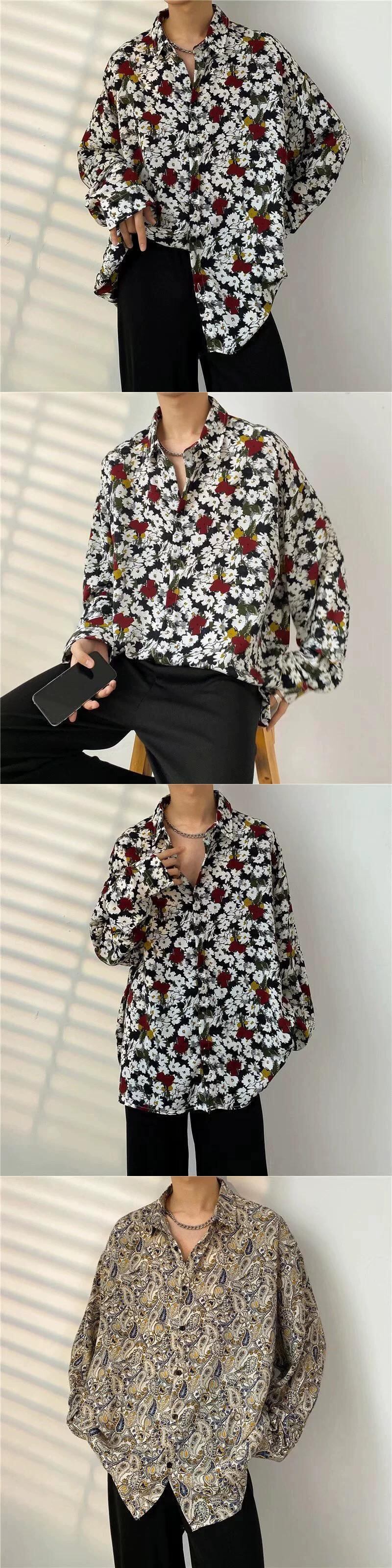 フラワーシャツメンズハイエンド春秋長袖トレンディブランドイン無頼漢ハンサムメンズシャツデザインセンスニッチトップ服 ロング スプリング 春物 オータム 秋物 フラワーデザイン 1285173021011452