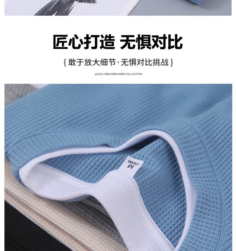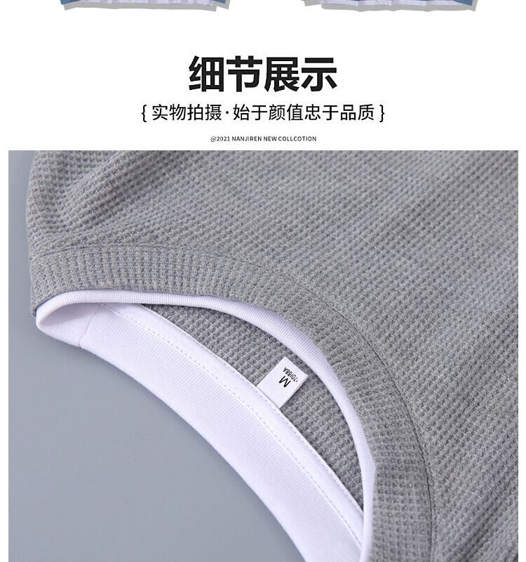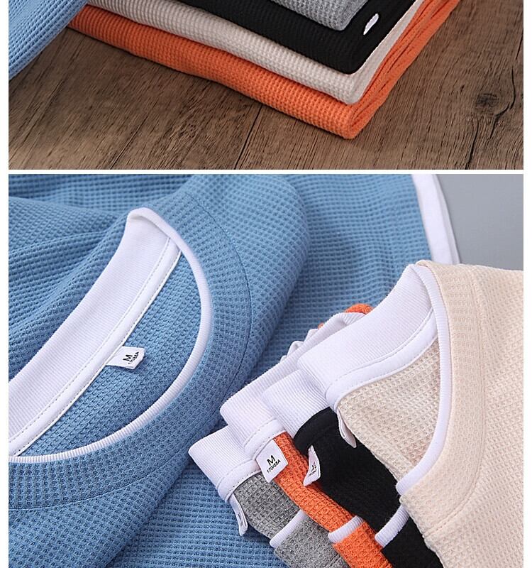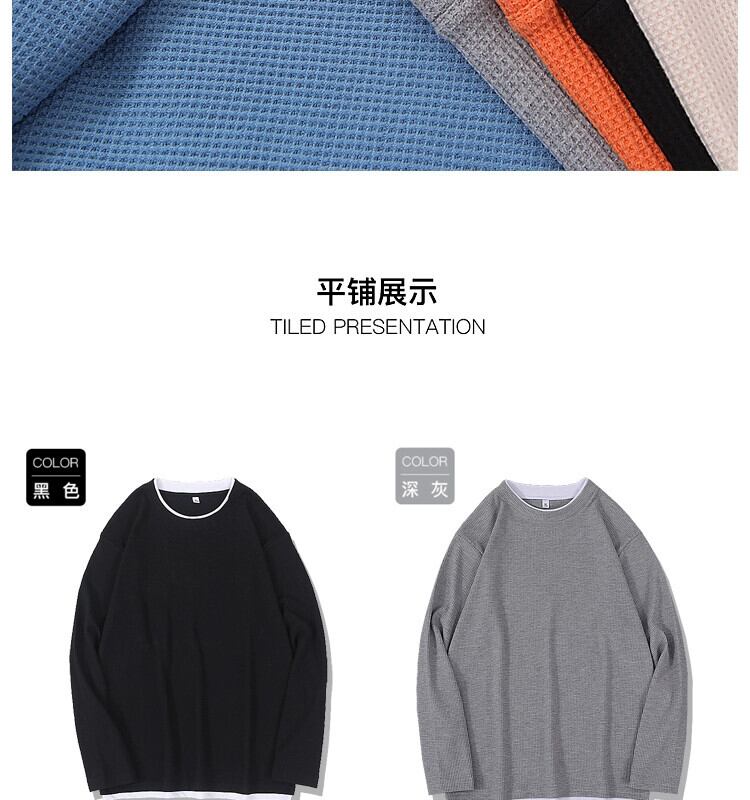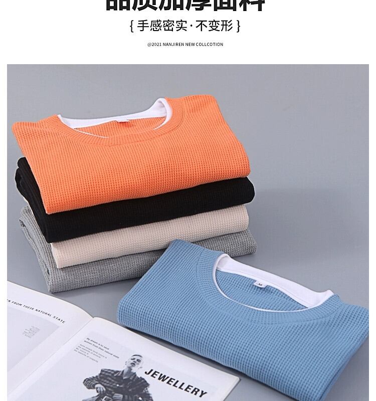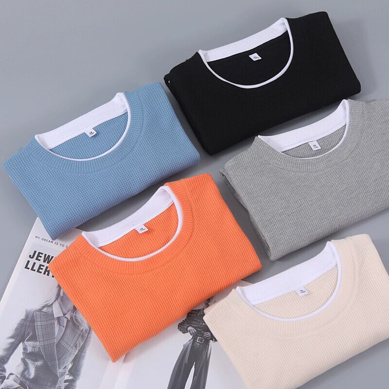 ワッフルフェイクツーピースラウンドネック長袖Tシャツメンズアメリカンハイストリートイントレンドオールマッチ春秋ルーズ潮ブランドセーター ロング スプリング 春物 オータム 秋物 Oネック 1285111800642247