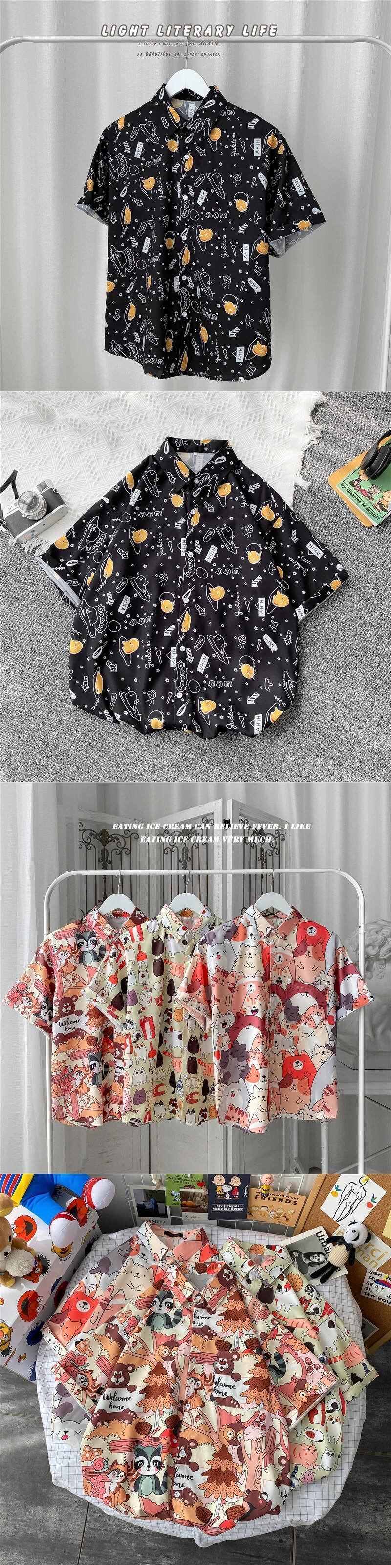 ハワイアン花柄シャツメンズ半袖香港スタイルイン潮ブランドルーズ悪党ハンサムジャケット夏のビーチカップルシャツ サマー 夏物 1285173364632147