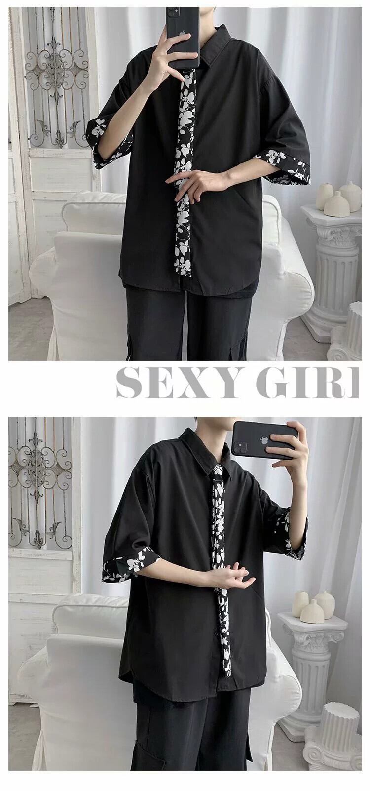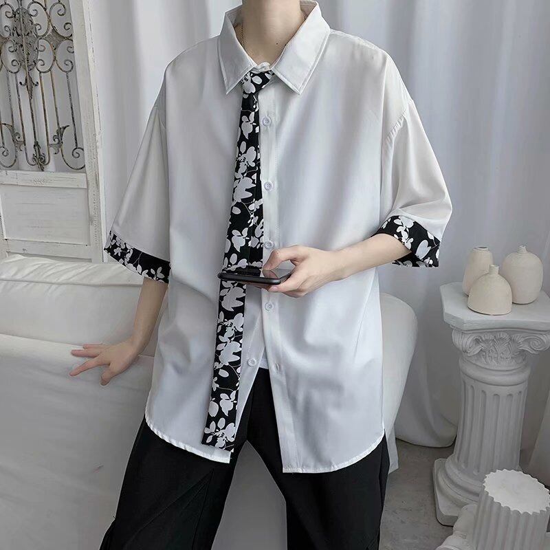 半袖シャツメンズカジュアル七分袖シャツ香港スタイルルーズインチシャツトレンド夏薄手コートトップ服 サマー 夏物 1285139517379567