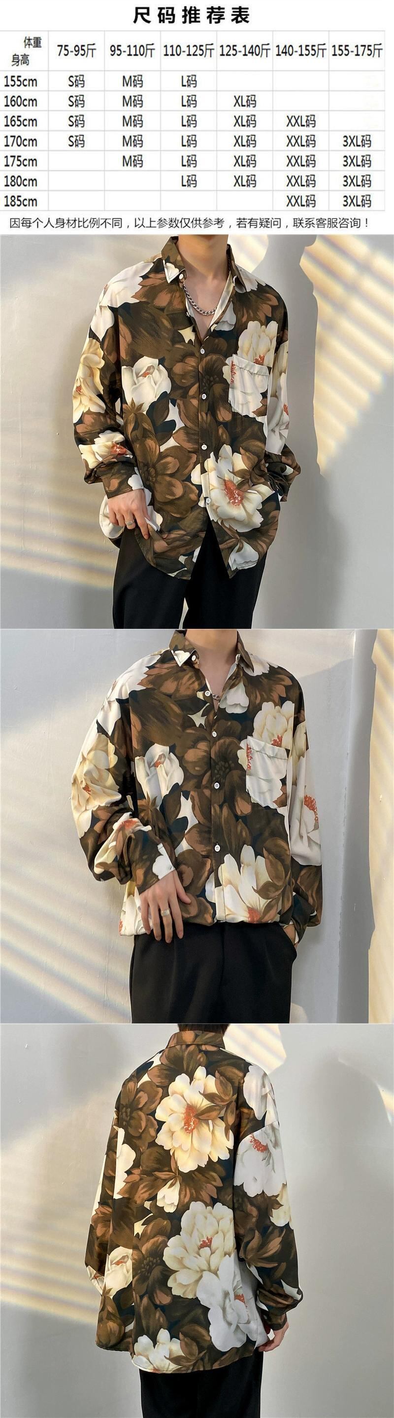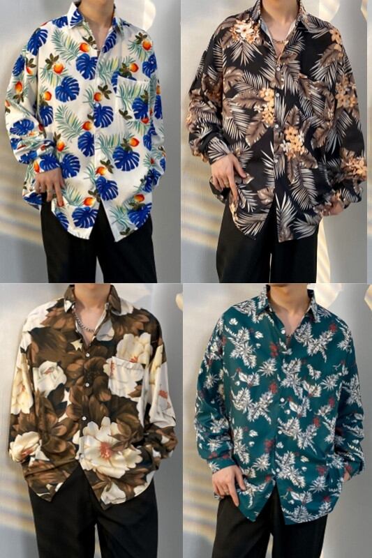 香港スタイルヴィンテージフル油絵フラワーシャツ男性と女性レトロ悪党ハンサムオールマッチルーズカップル長袖シャツジャケット ロング フラワーデザイン ビンテージ 128516834043158