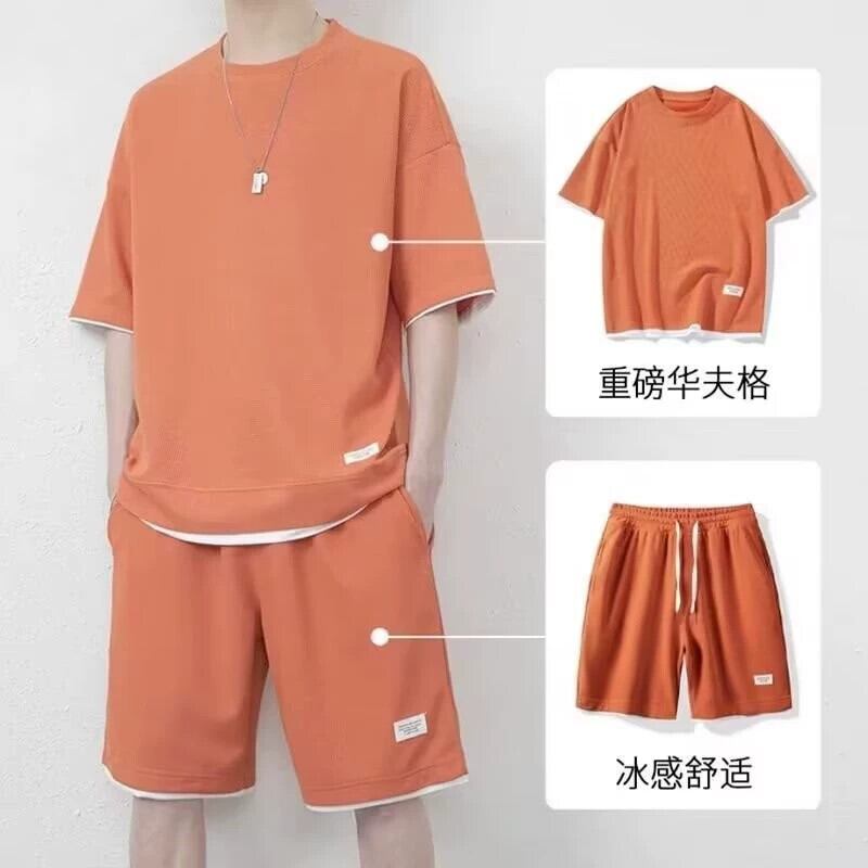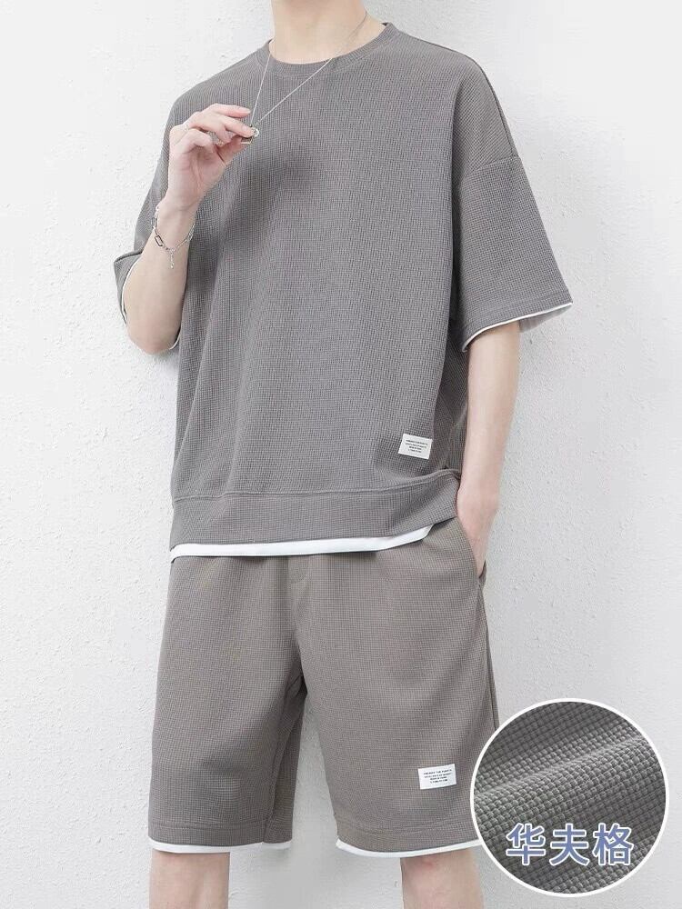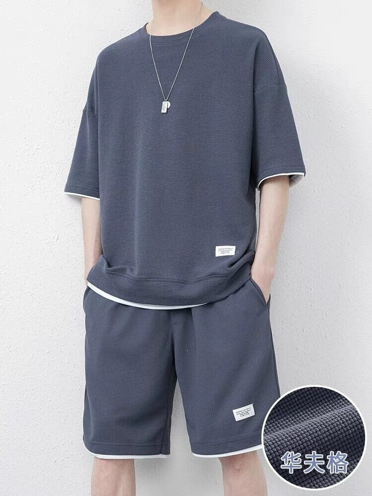 夏薄手パジャマメンズ半袖ショートパンツワッフルルーズカジュアルスポーツ夏のツーピースホームサービススーツ サマー 夏物 ショーツ ブルマー 1285135734949020