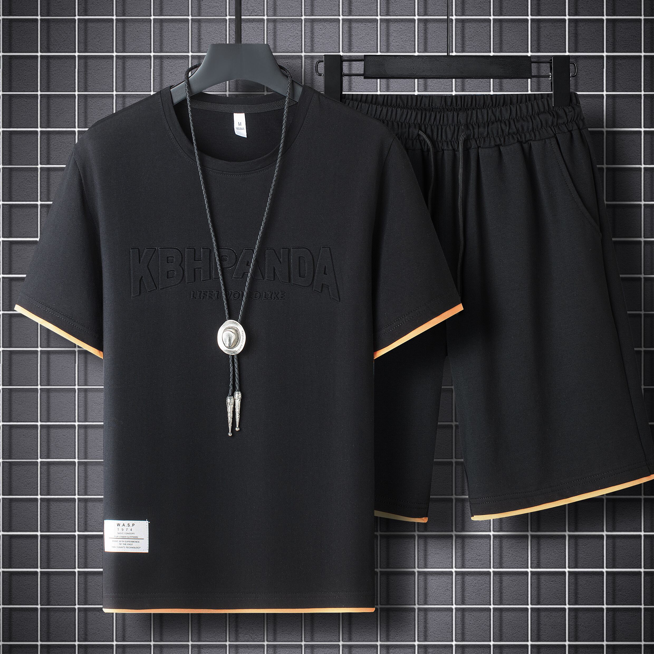 半袖スーツ メンズ コットン Tシャツ 夏 コロケーション ハンサム 学生 ティーンエイジャー カジュアル ファッション メンズ ツーピース スーツ サマー 夏物 1285110248233658