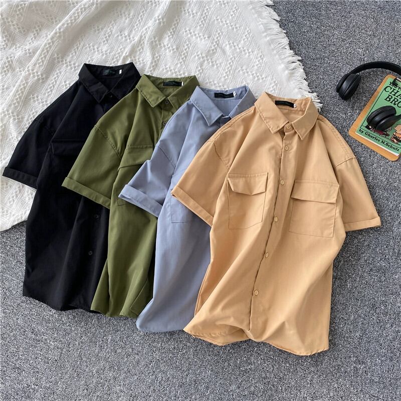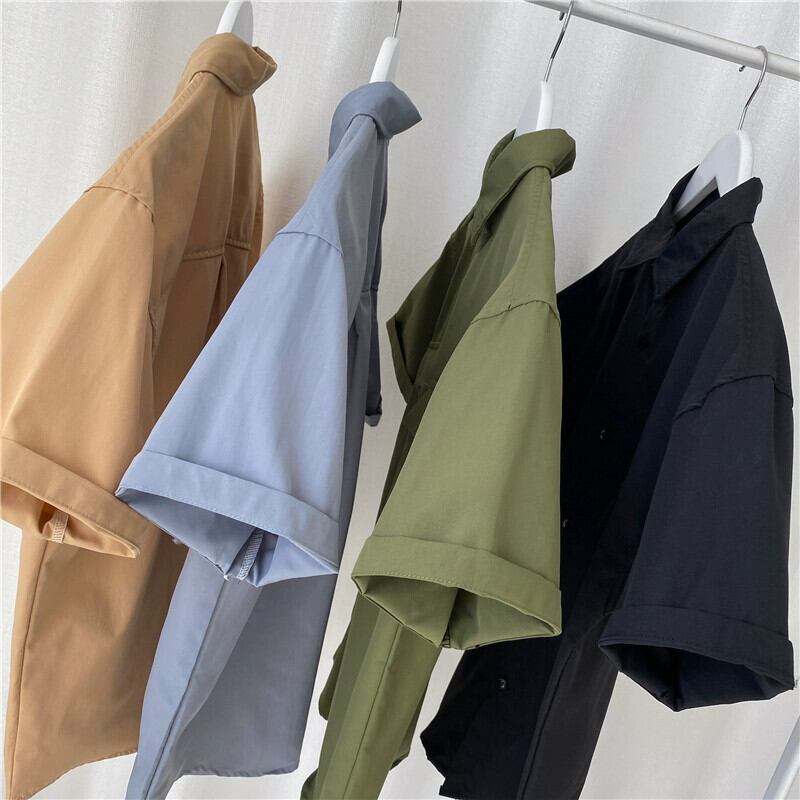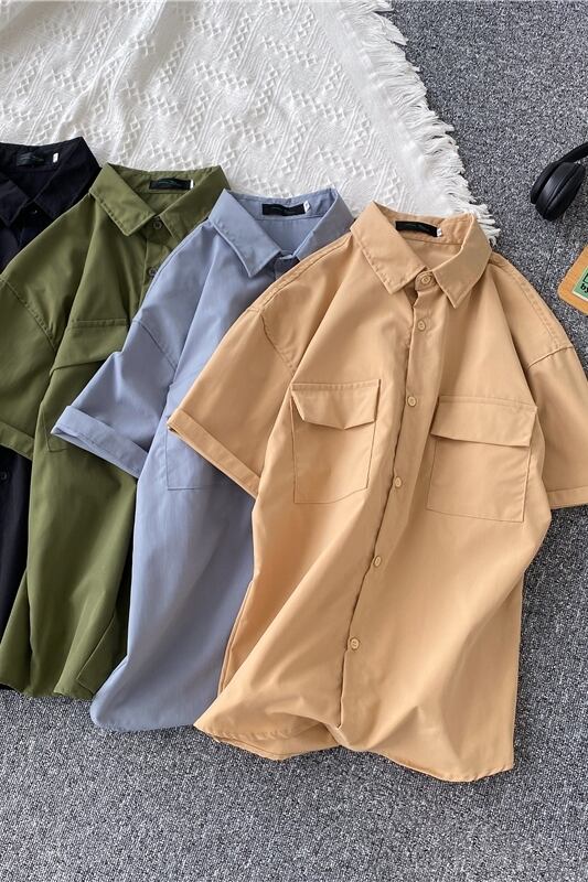 色:3018#半袖シャツ--カーキ,3018#半袖シャツ--黒,3018#半袖シャツ-グリーン,3018#半袖シャツ--グレー,ボトムコットンショートT-ホワイト