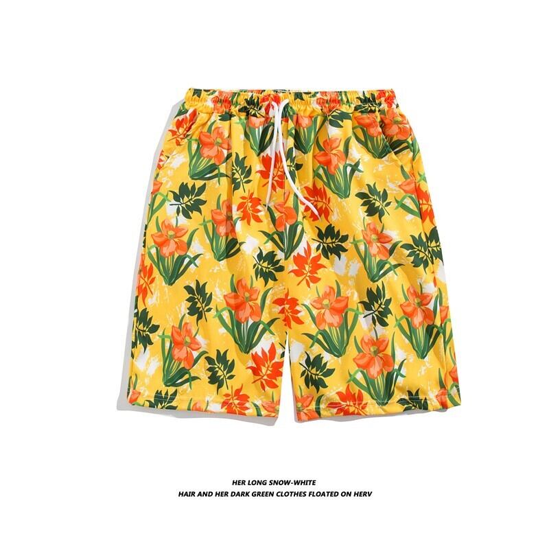 夏薄い花柄ショートパンツゆったりビーチパンツメンズトレンドブランド速乾ビッグパンツ5点式カジュアルパンツホームパンツ サマー 夏物 ショーツ ブルマー フラワーデザイン 1285117531747514