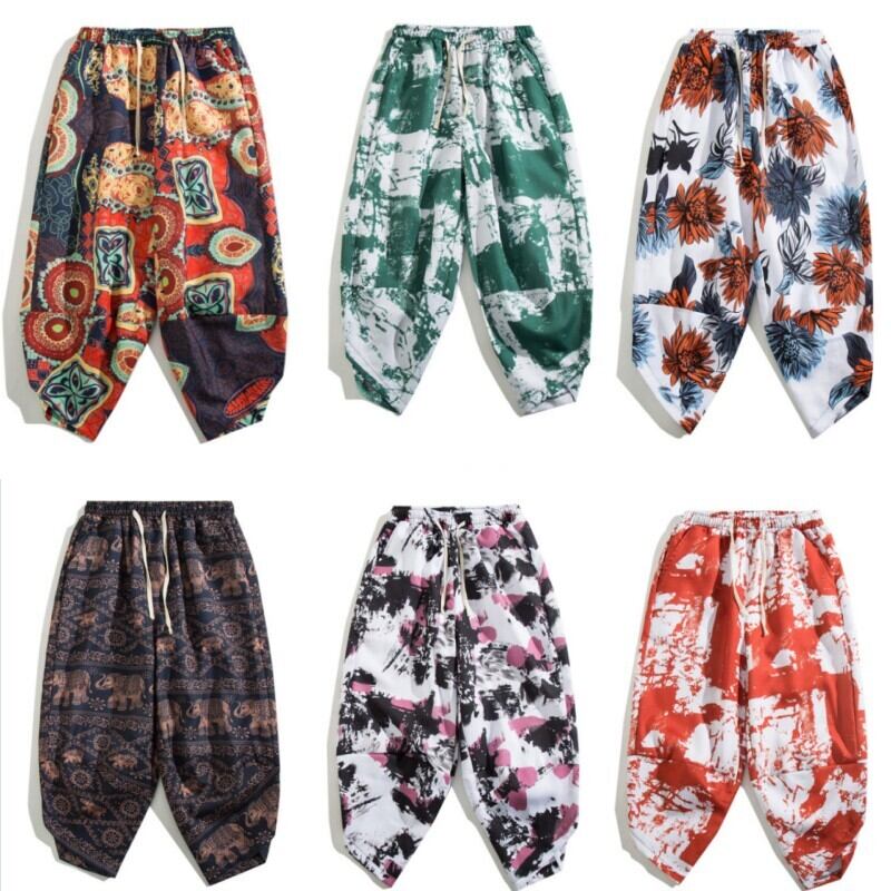 タイフラワーパンツメンズ夏薄部クロップドパンツルーズカップルブルマ中国風三亜旅行ビーチパンツ サマー 夏物 ショーツ ブルマー フラワーデザイン 1285166652149135