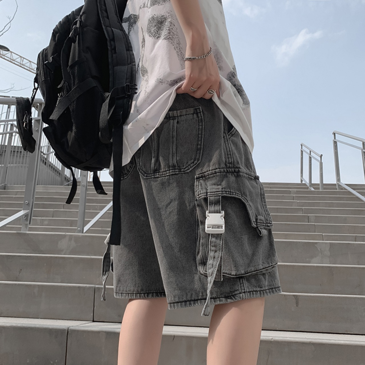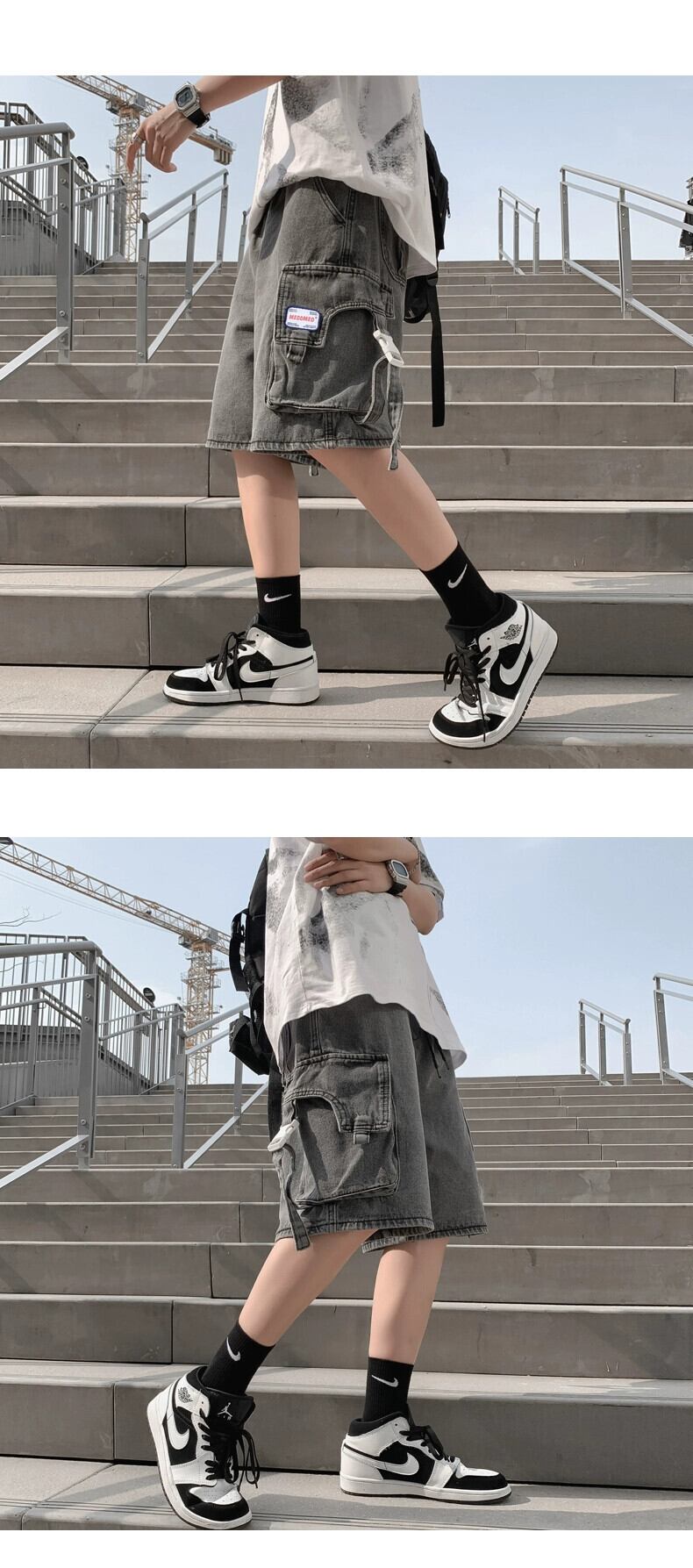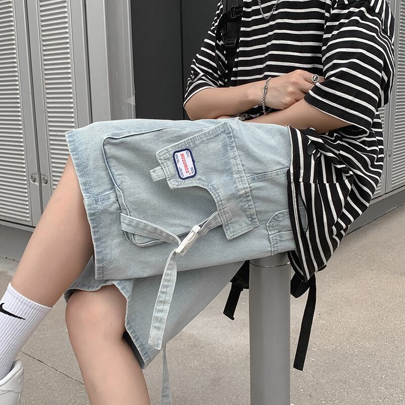 機能ツーリングデニムショートパンツメンズ夏薄セクションインカップルビーチパンツルーズトレンディカジュアル5点パンツ サマー 夏物 ショーツ ブルマー 1285144081471018