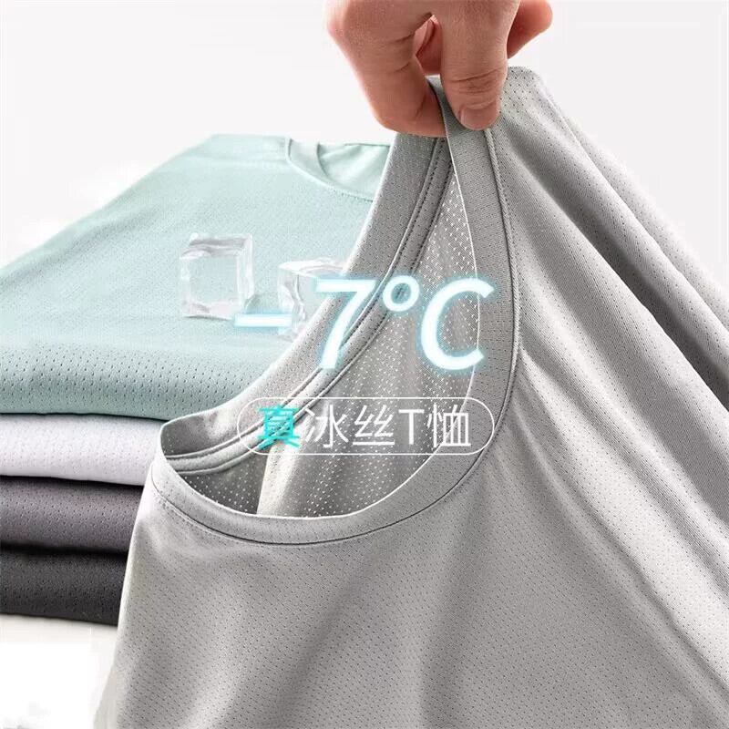 アイスシルク速乾性メンズTシャツ夏の男女学生半袖メッシュ通気性スポーツ半袖大きいサイズのランニング服 大きめサイズ サマー 夏物 1285153895108036