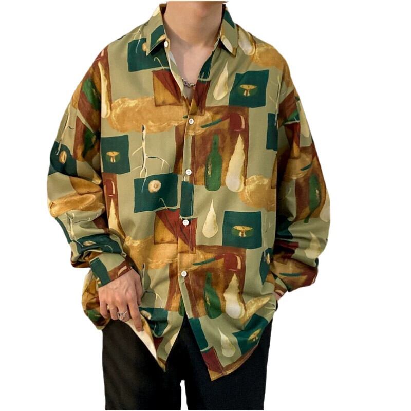 イン香港風味ヴィンテージビンテージ感長袖フラワーシャツ男性タイハワイアンレトロシャツ悪党ハンサムジャケットトレンディ ロング フラワーデザイン 1285162661241916