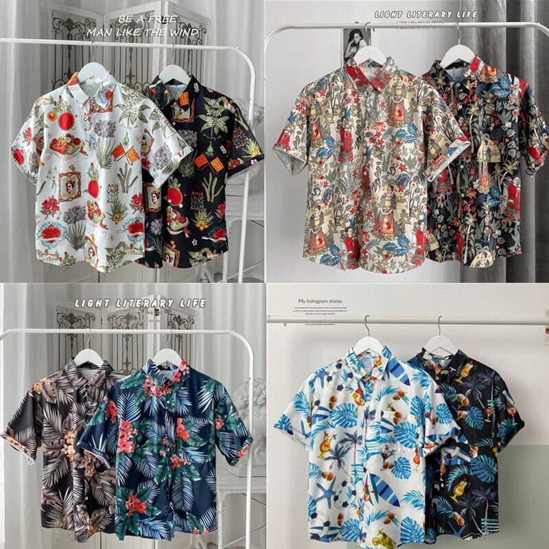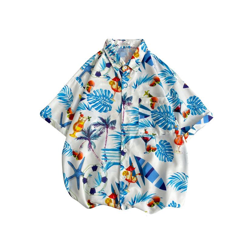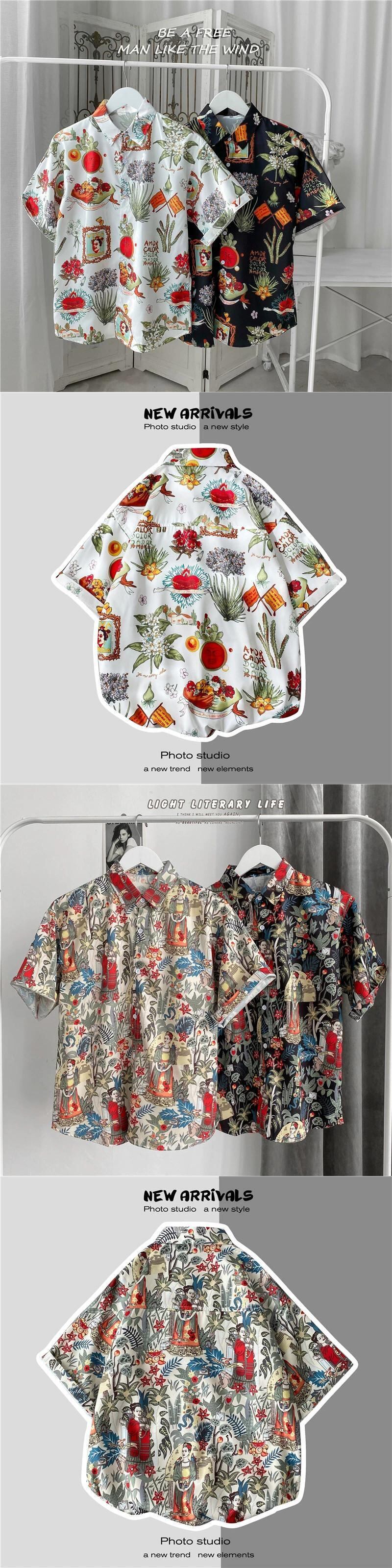 半袖シャツ男性と女性香港スタイルのレトロなプリントシャツ夏薄いセクションドレープハンサムハンサムカジュアル半袖トップジャケットトレンディな サマー 夏物 1285150107872737
