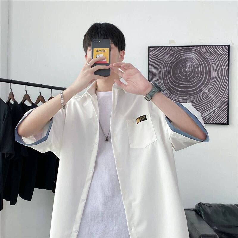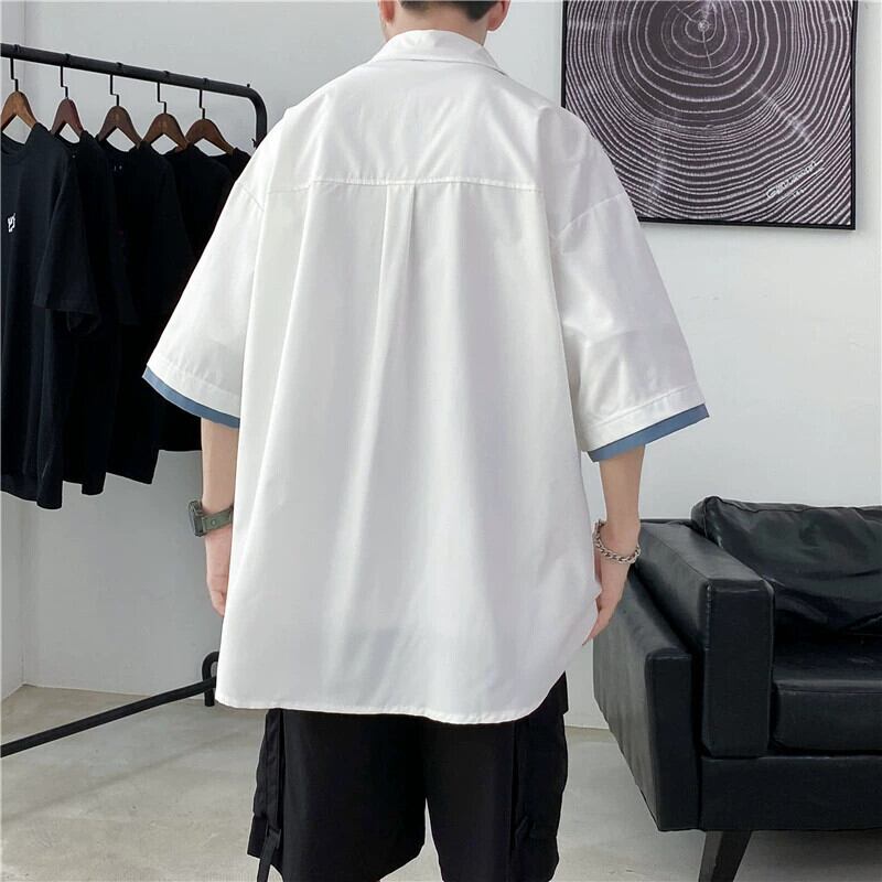 半袖シャツメンズ夏薄手セクションルーズイントレンディハンサムフェイクツーピースデザインセンスニッチ非常に妖精コート サマー 夏物 1285140309954996