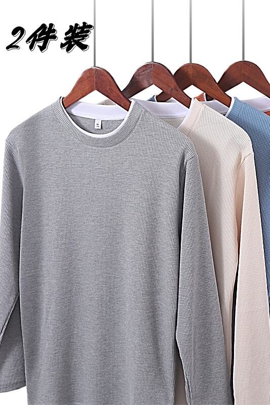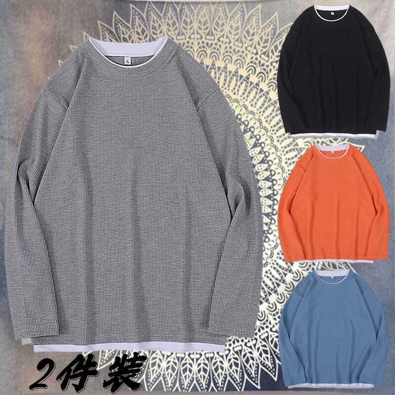 アメリカの厚手のセーターメンズ秋のトレンディなブランドハイストリートワッフル長袖Tシャツのゆったりとした多目的バージョンの大きいサイズトップス ロング 大きめサイズ オータム 秋物 1285166408367481